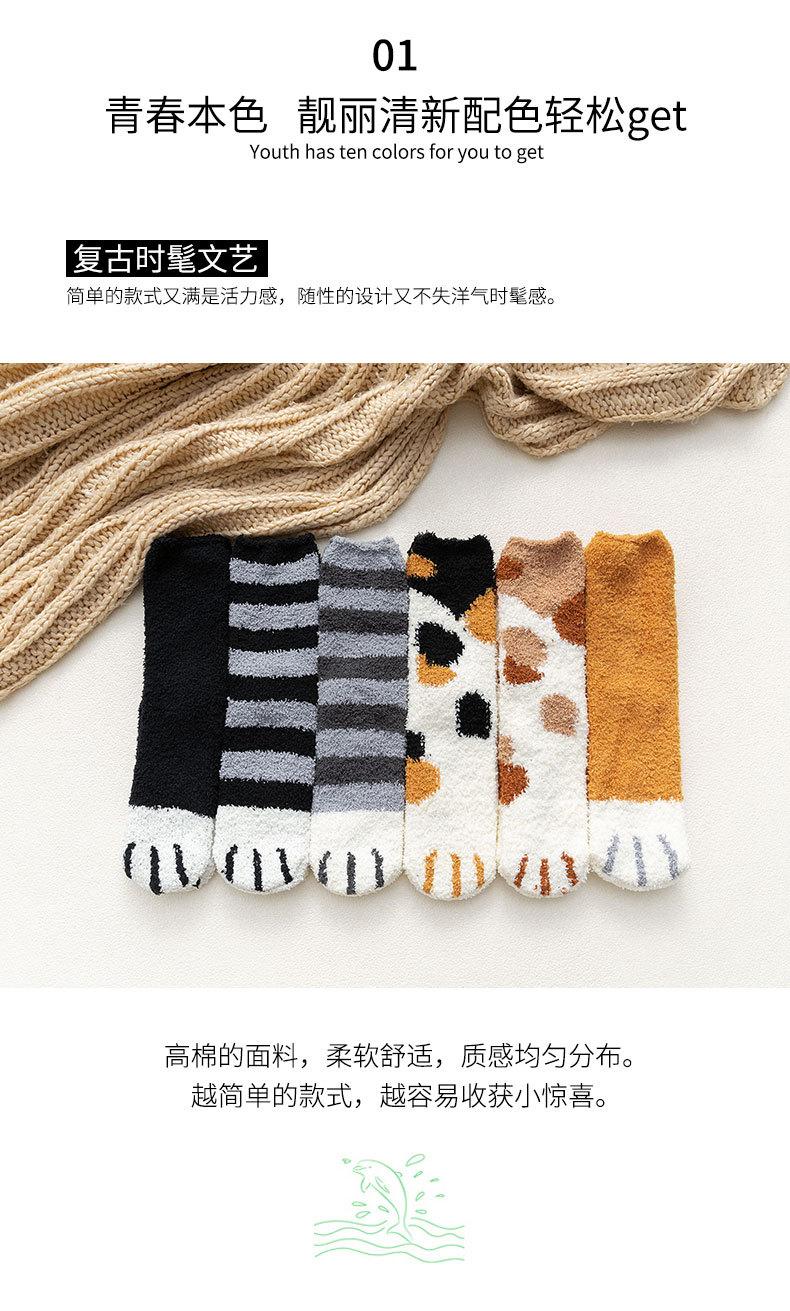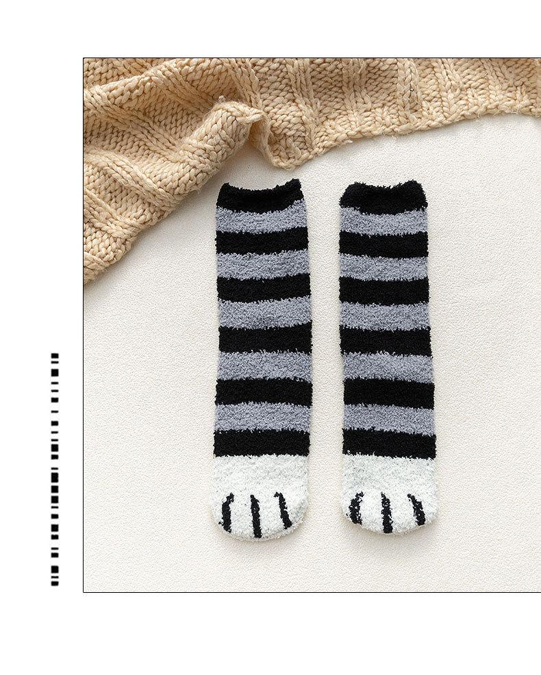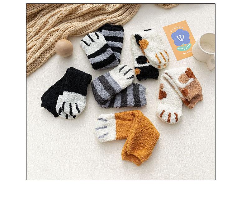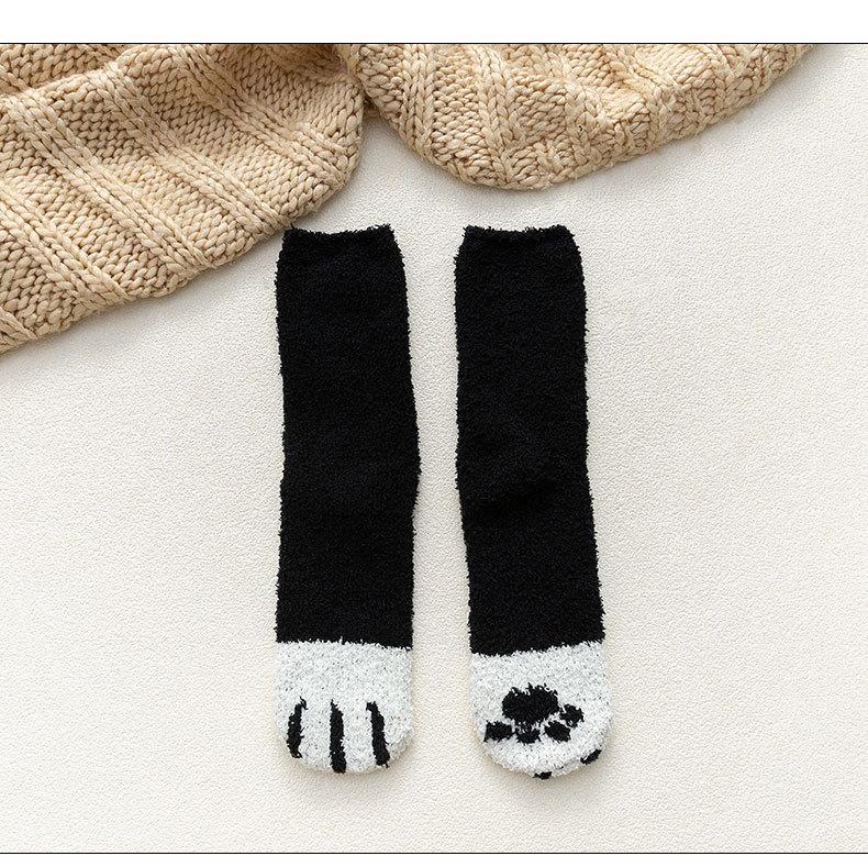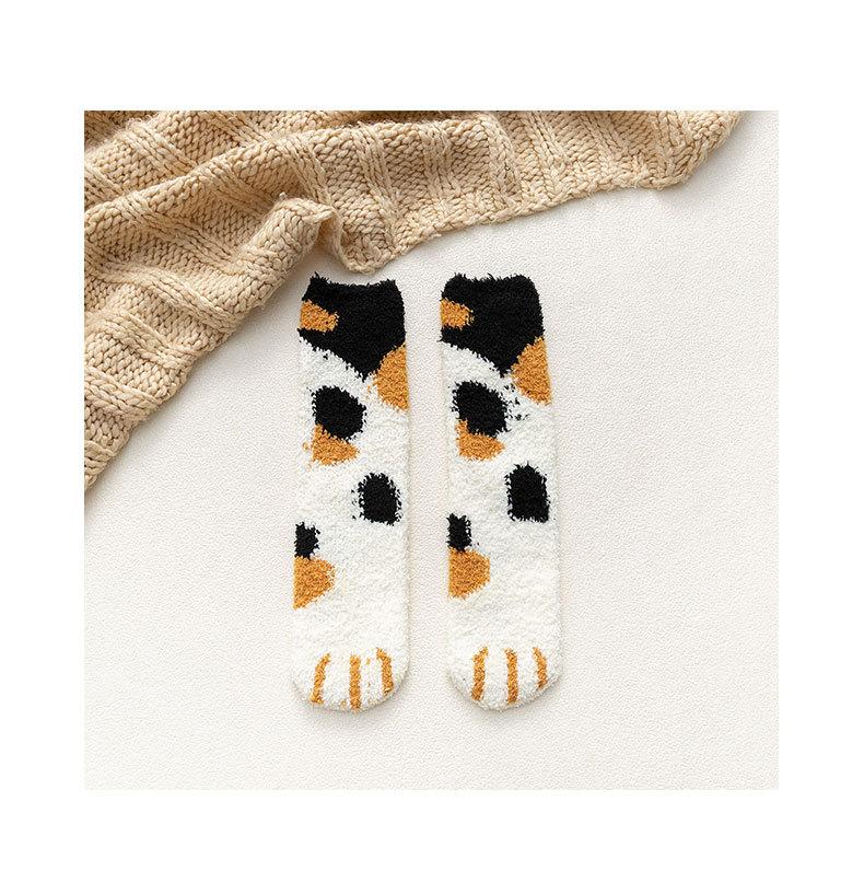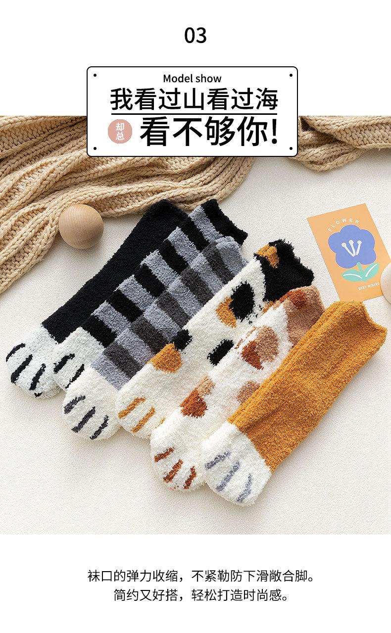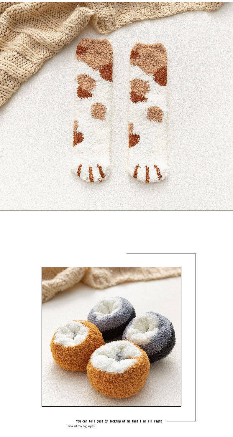 Calcetines de terciopelo coral para mujer, calcetines con forma de garra de gato, además de calcetines de terciopelo acolchados para otoño e invierno, calcetines de tubo, calcetines cálidos para dormir, venta al por mayor