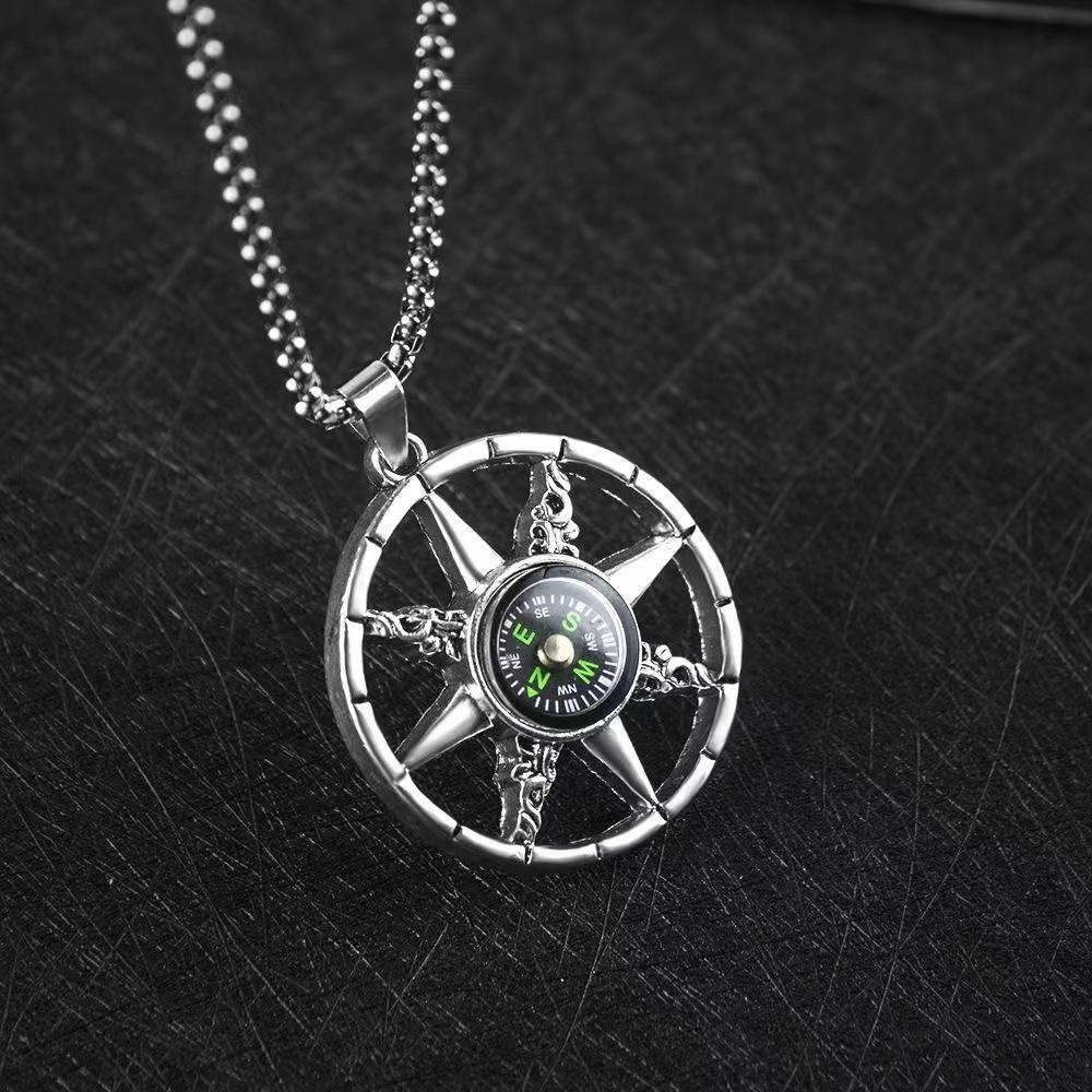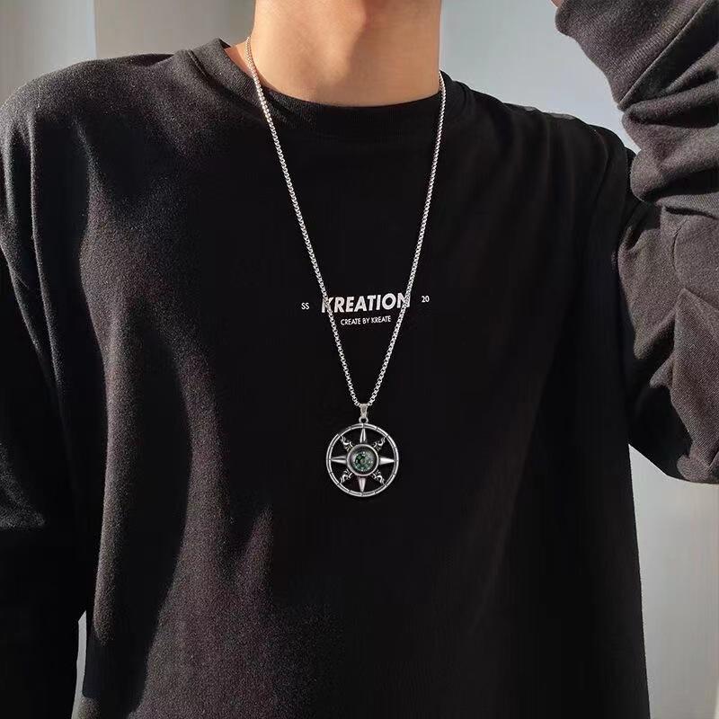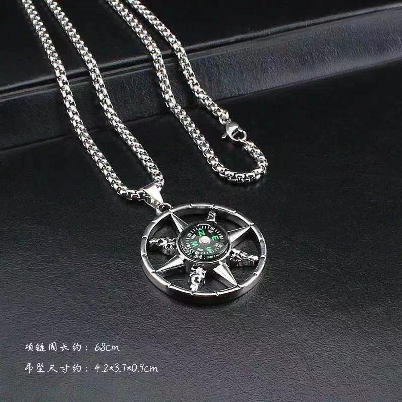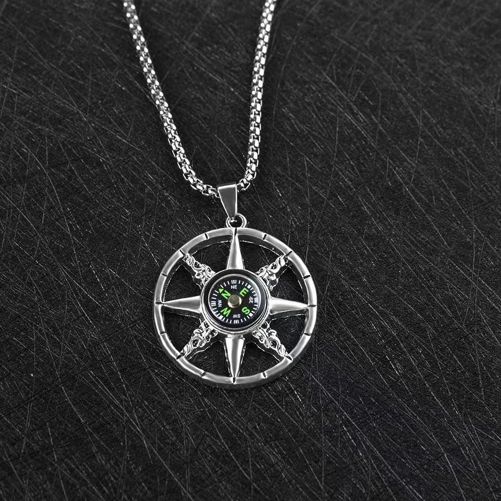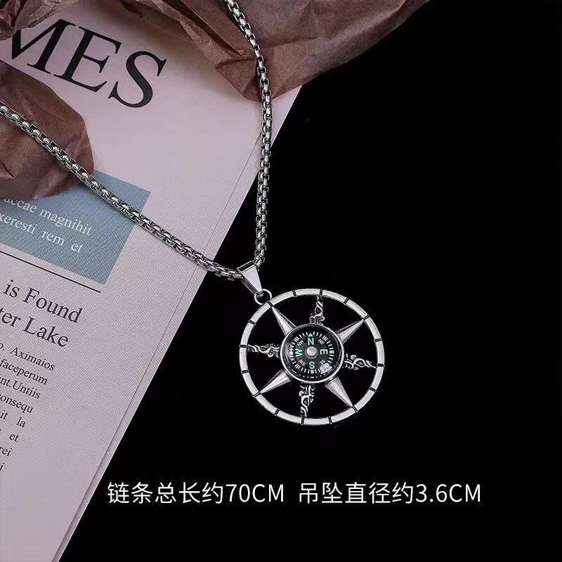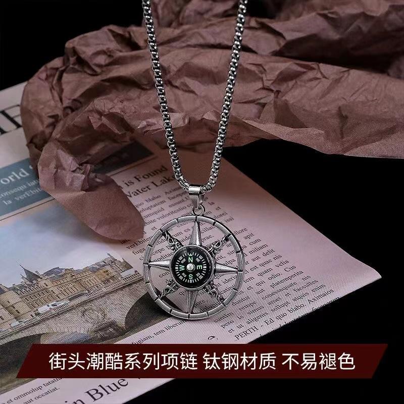 Compra Collar con colgante de brújula retro europea y americana de acero de titanio para hombres y mujeres, accesorios de cadena de suéter largo de moda hip hop con personalidad que combina con todo al por mayor en Joom.pro