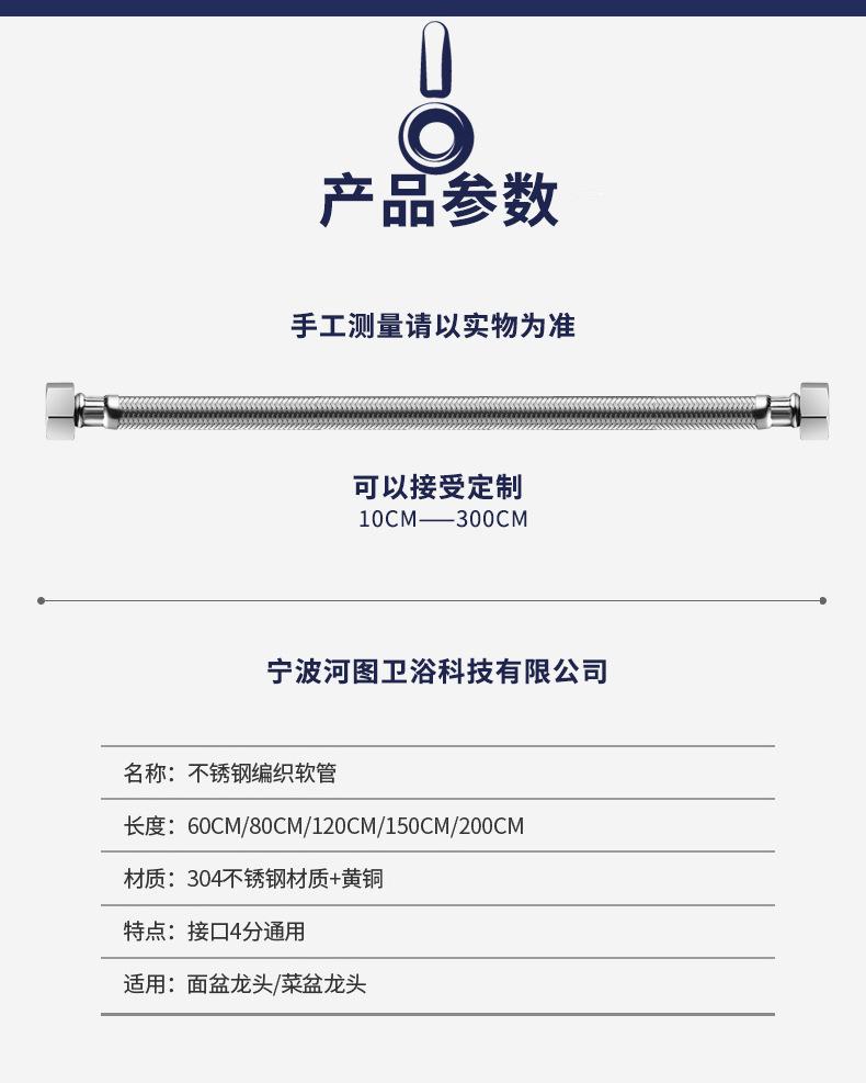 304 stainless steel braided 20cm, 304 stainless steel braid 30cm, Stainless steel braided pipe 40cm, 304 stain...