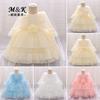 Vestido de princesa para niña transfronterizo, nuevo, con encaje plisado, para banquete de un año, manga larga, calado.