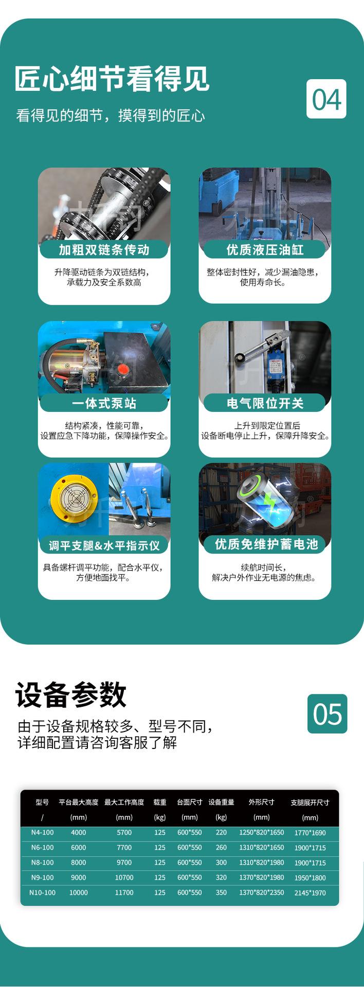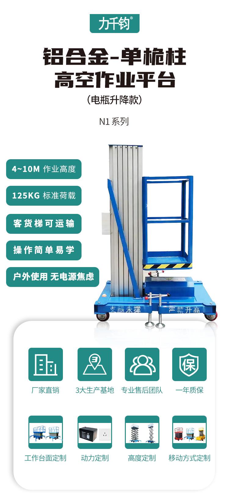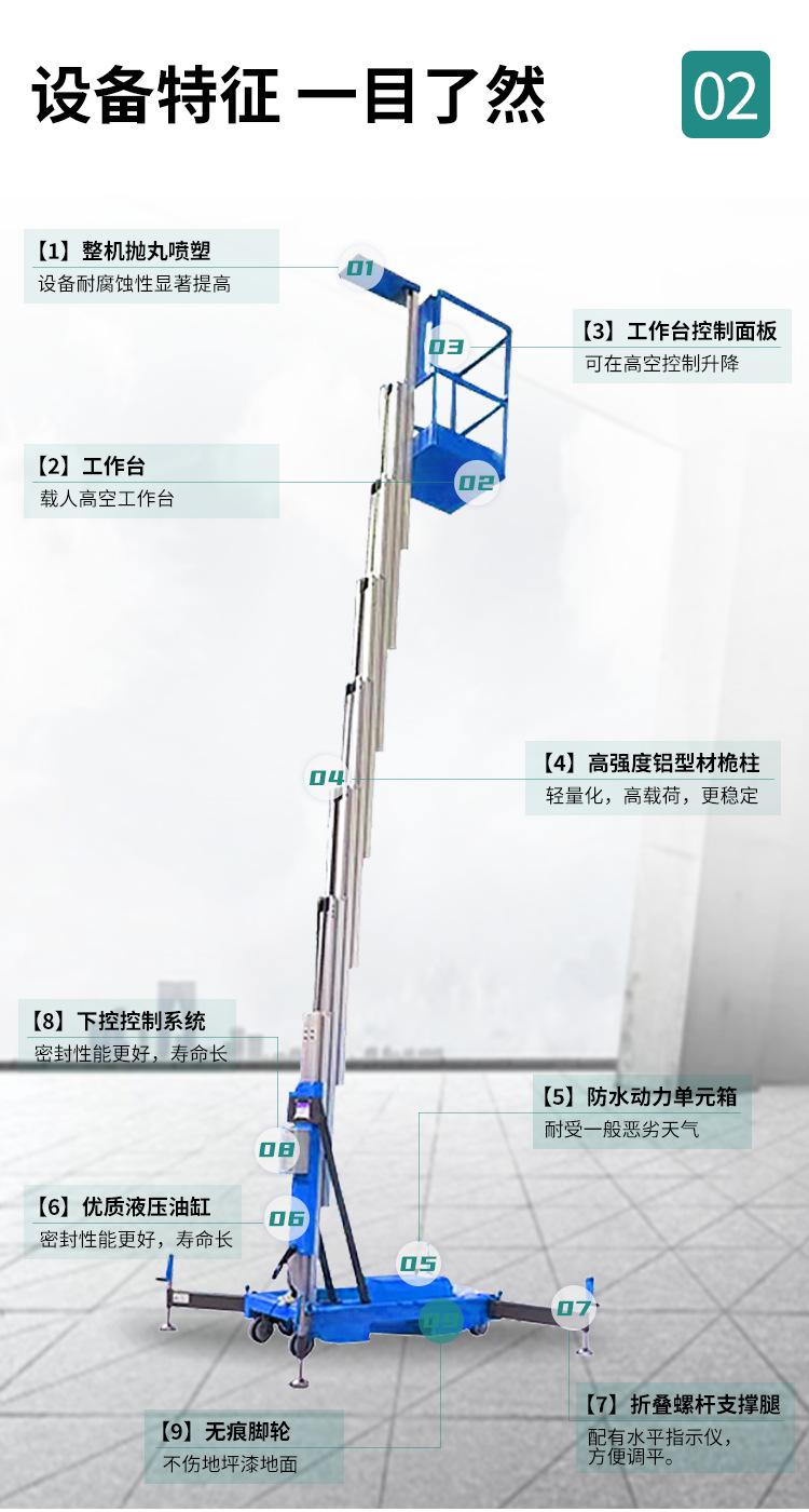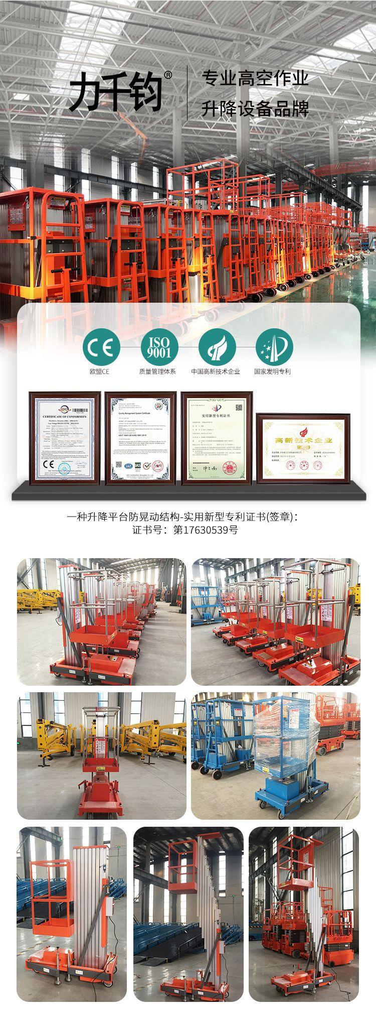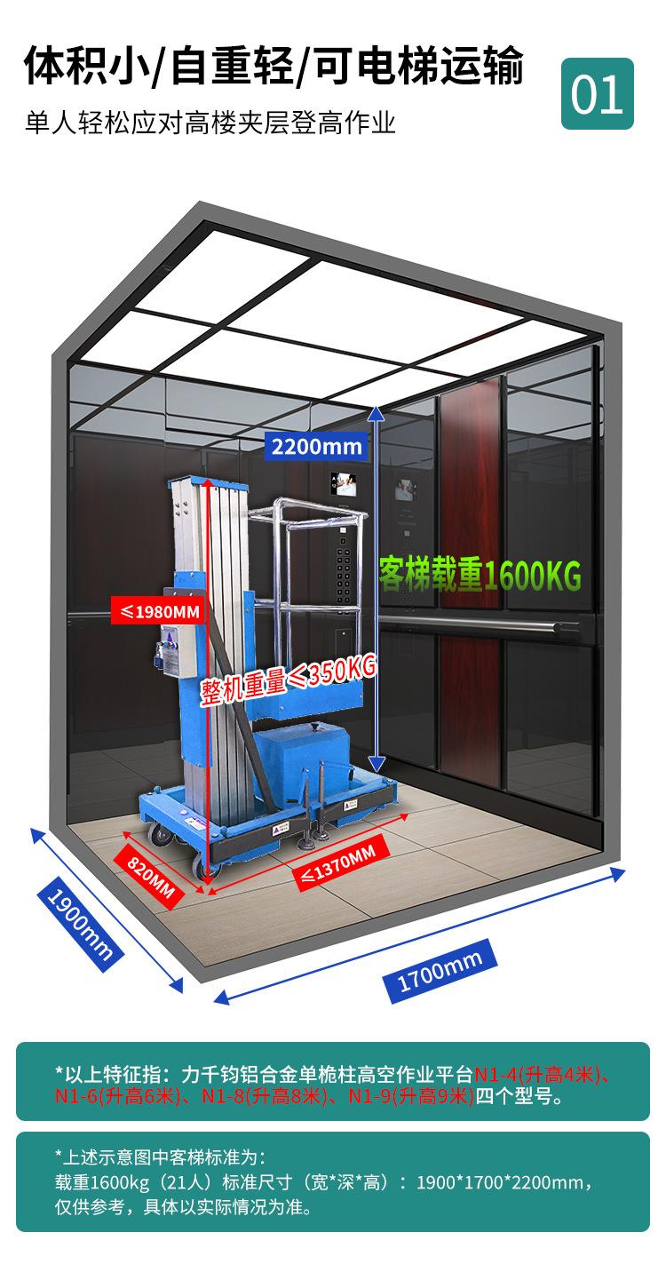 Mesa de Trabajo Elevadora de Columna Única de Aleación de Aluminio Tipo Empuje Eléctrica Hidráulica Pequeña Escalera de Mano Desmontable