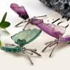 Adornos de mariposa y libélula de fluorita de colores naturales, piedra original, decoración creativa para el hogar, artesanías al por mayor