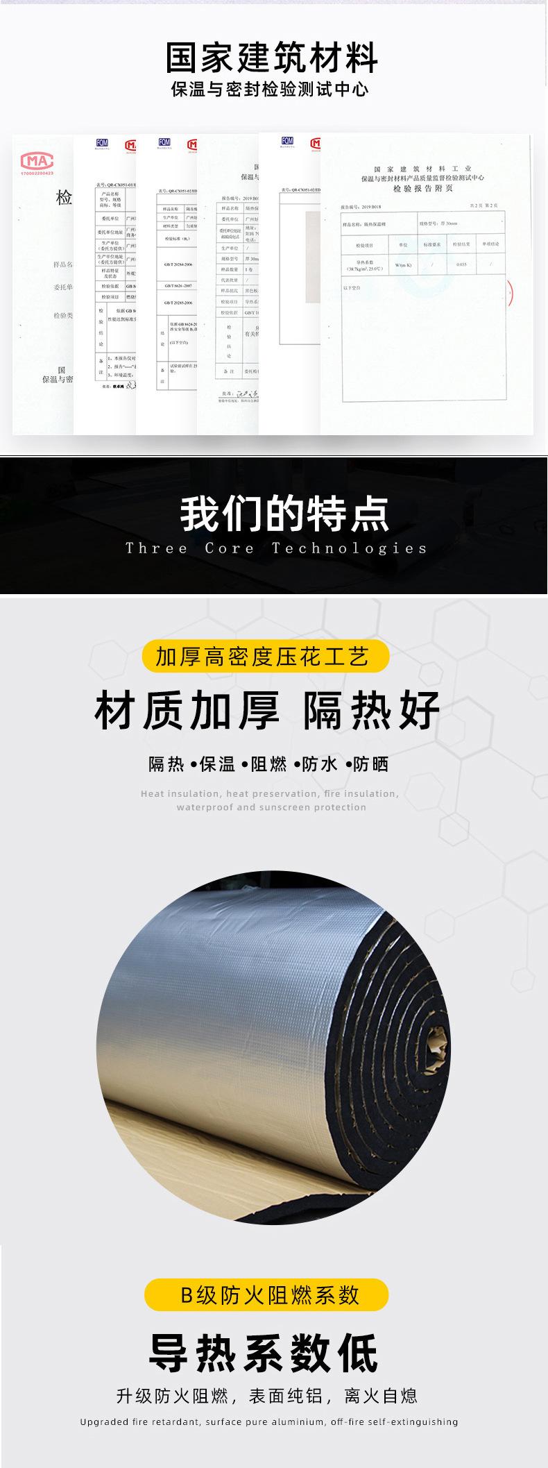 Algodón aislante autoadhesivo panel aislante para techo resistente a altas temperaturas ignífugo a prueba de sol material aislante de caucho y plástico