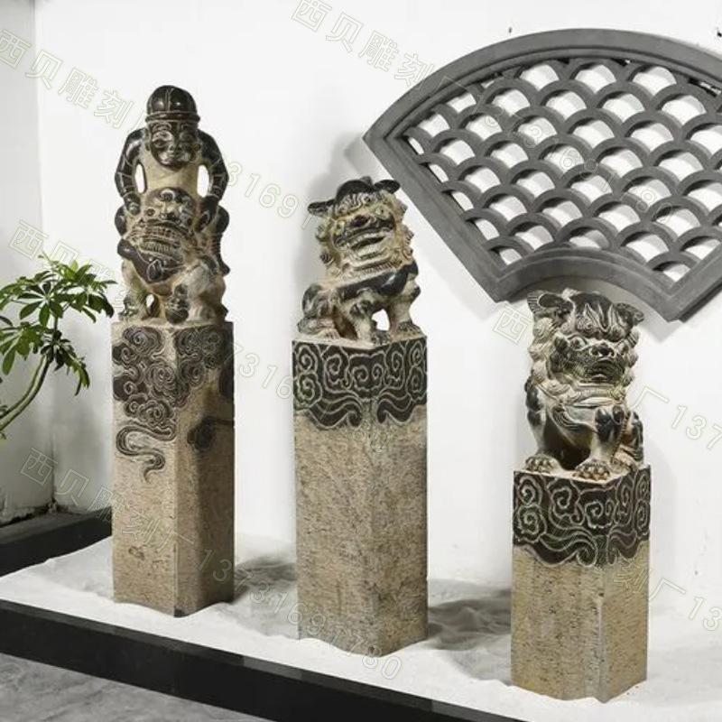 Piedra tallada tradicional para poste de amarre de caballos, artesanía única y exquisita