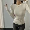 Camiseta de algodón de alta calidad para mujer, primavera y otoño 2024, fina, ajustada, con mangas raglán, cuello redondo, manga larga, ropa para mujer