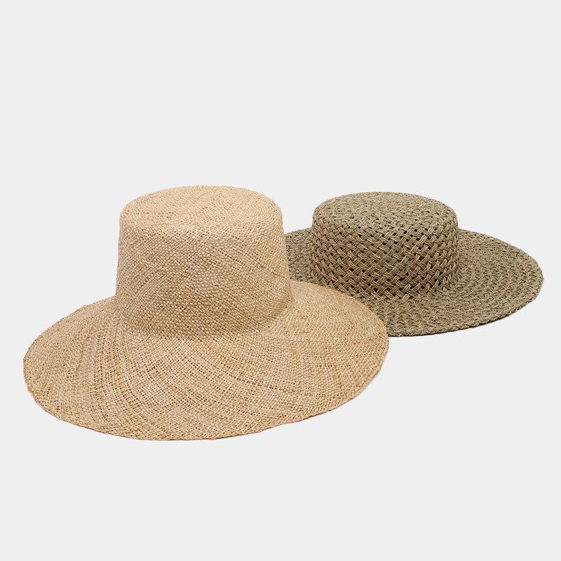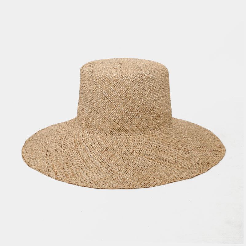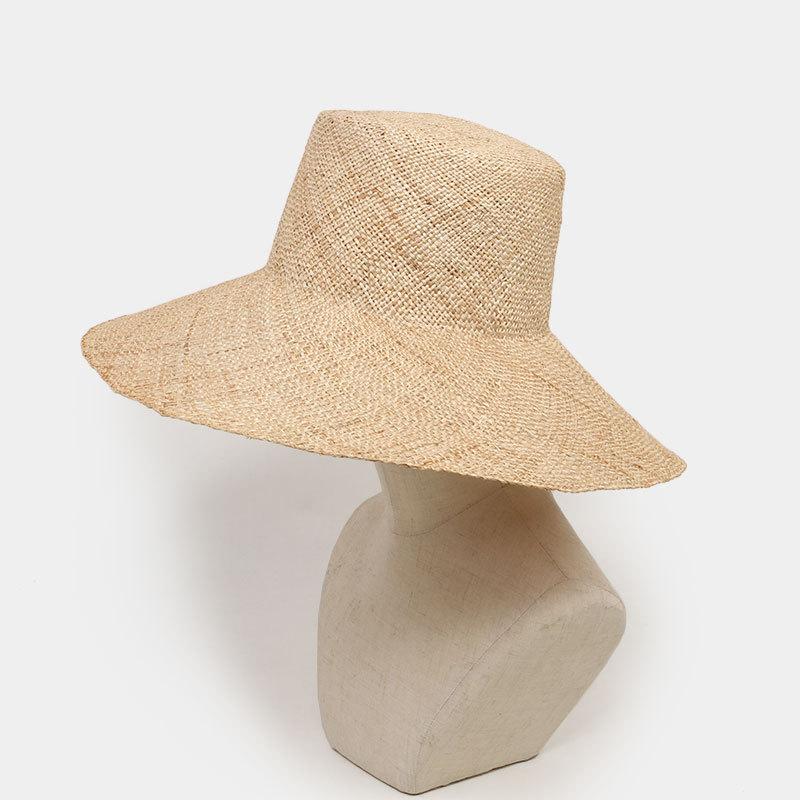 Sombrero de paja de ala ancha para mujer de primavera y verano, estilo francés de vacaciones, tejido a mano, para viaje, protección solar, playa, copa alta, sombrero de cubo de protección solar
