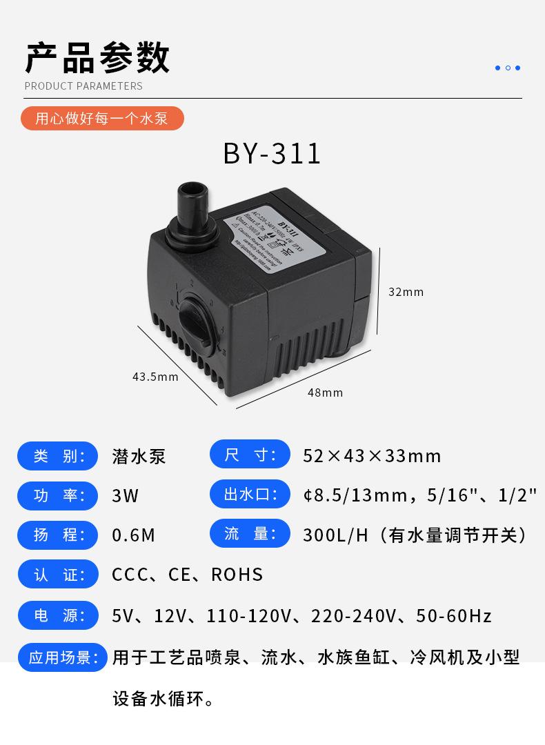 Bomba sumergible para acuario de 3 W, ventilador de aire acondicionado, CA 12 V CC 5 V, dispensador de agua para mascotas, bomba de agua, bomba de agua para fuente solar.