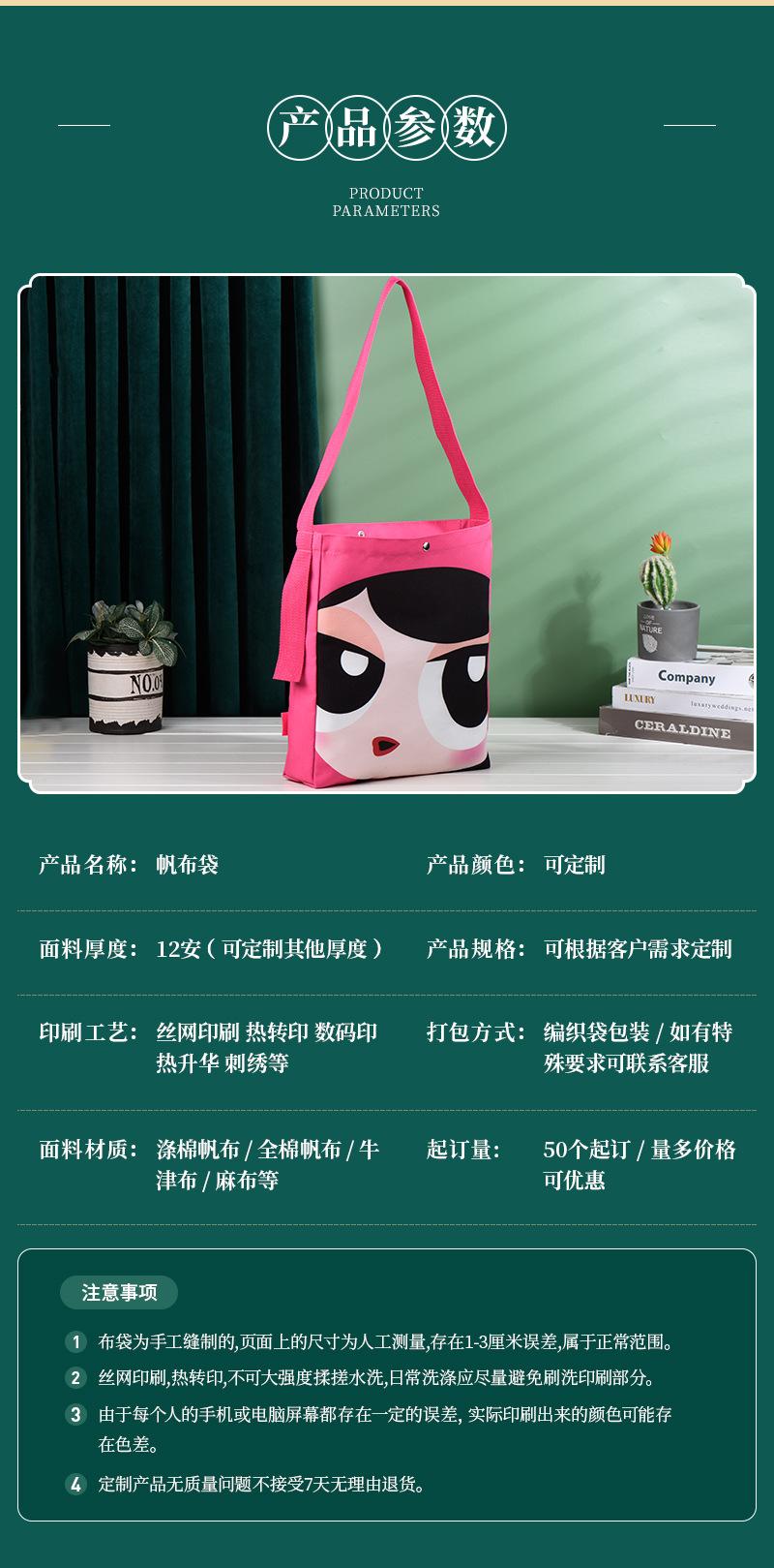Bolsa de Lona de Dibujos Animados al por Mayor para Fabricante Regalo Promocional para Estudiantes Bolso de Hombro Se Puede Personalizar con Impresión de Logo Cruzado