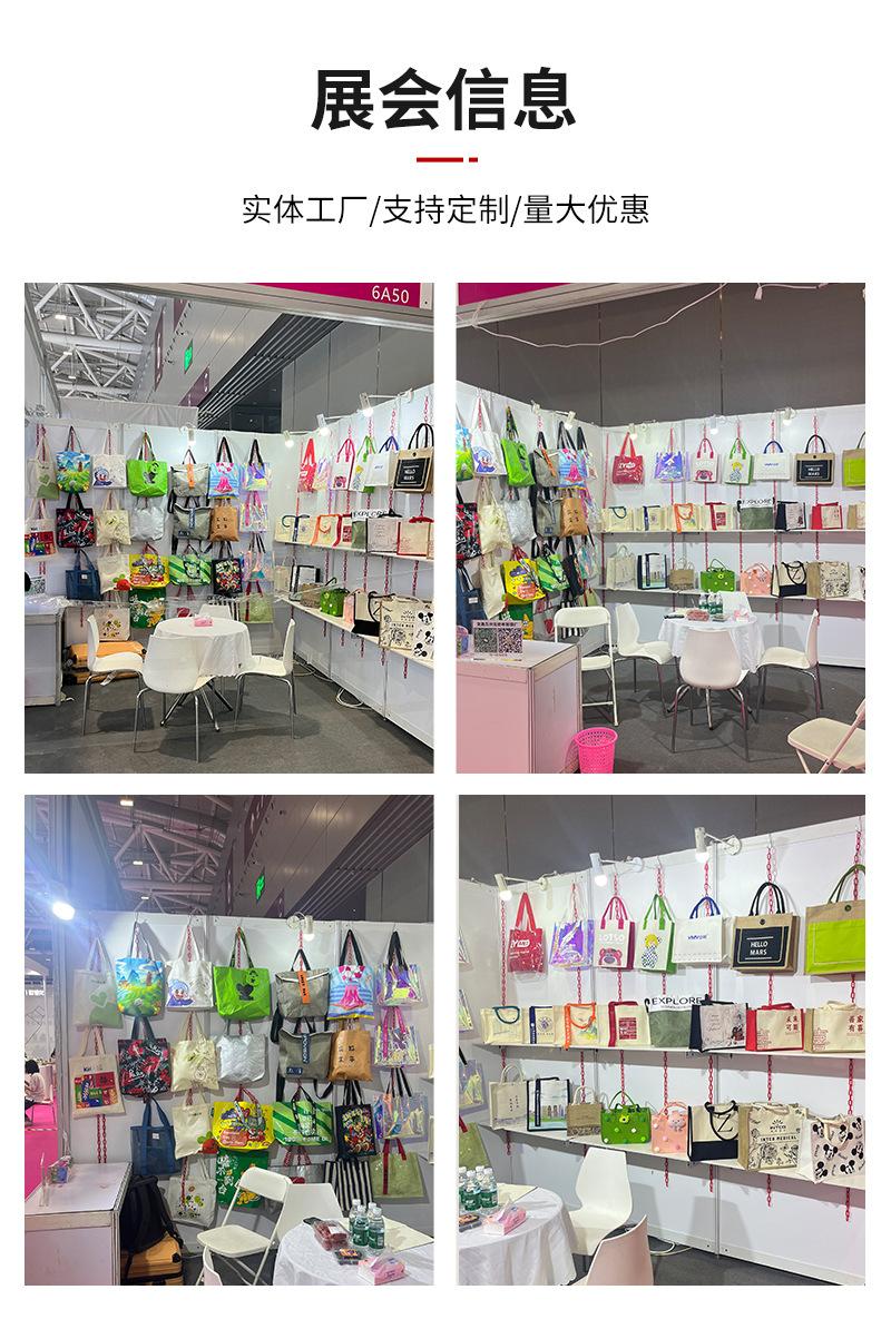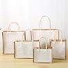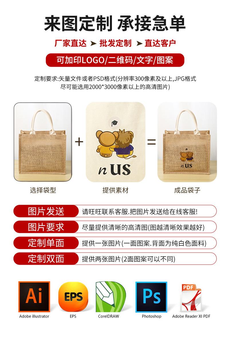 Bolsa de lino portátil sin impresión en stock, bolsa de yute para regalo, bolsa de compras al por mayor, fabricante de bolsas de lino con grafiti de dibujos animados para estudiantes