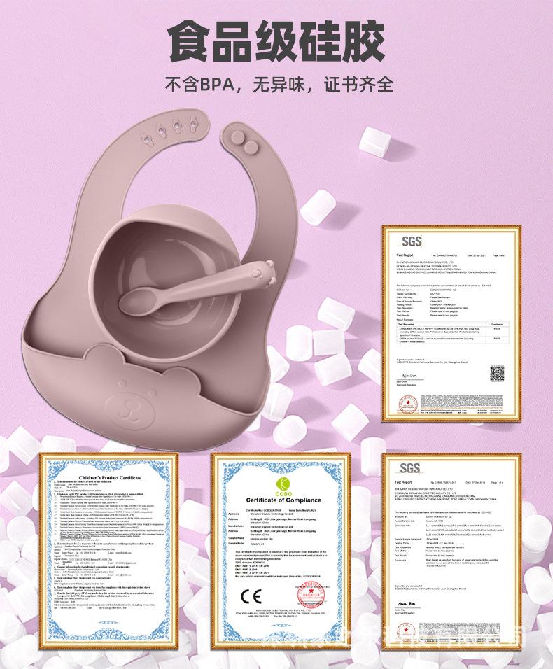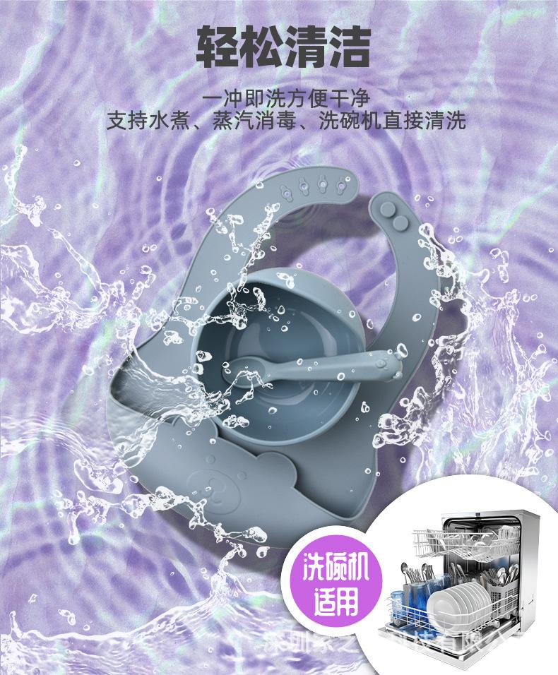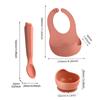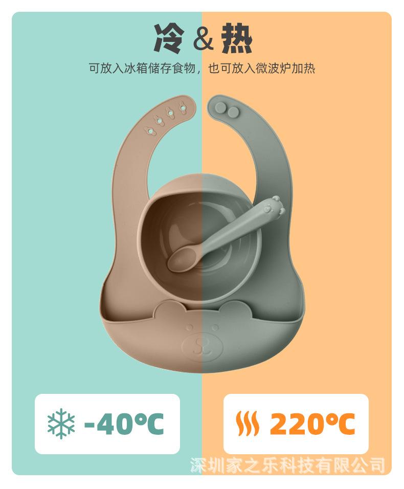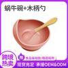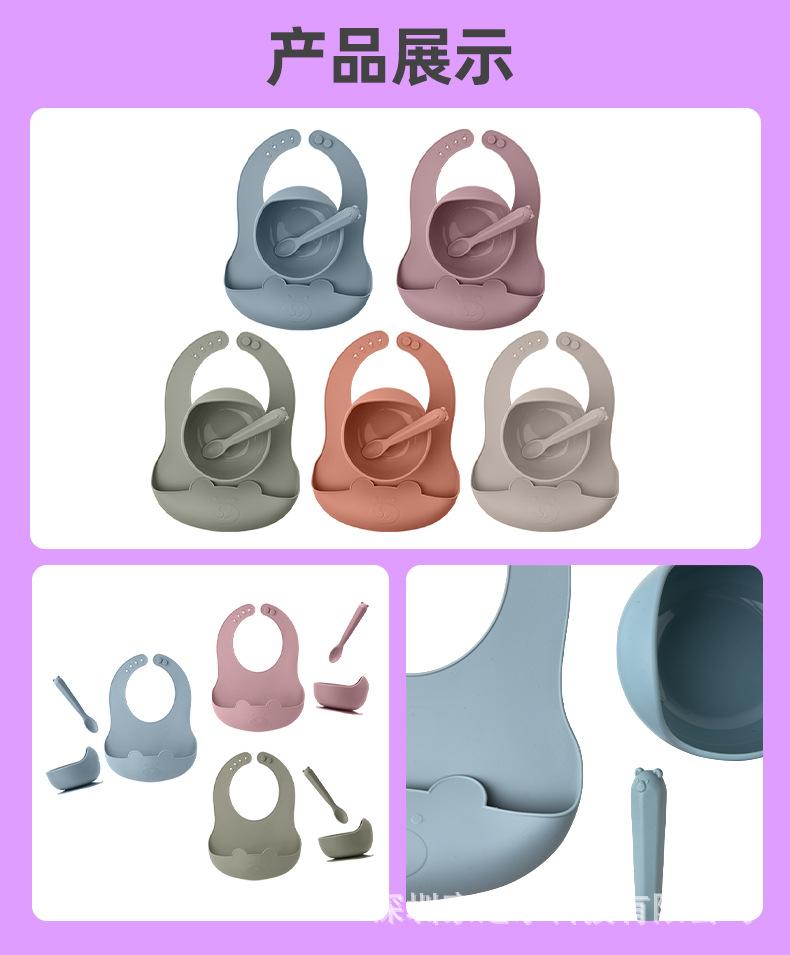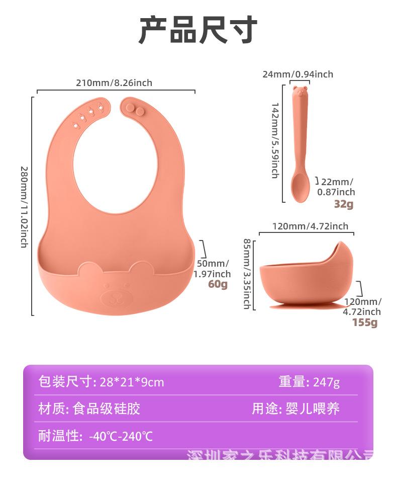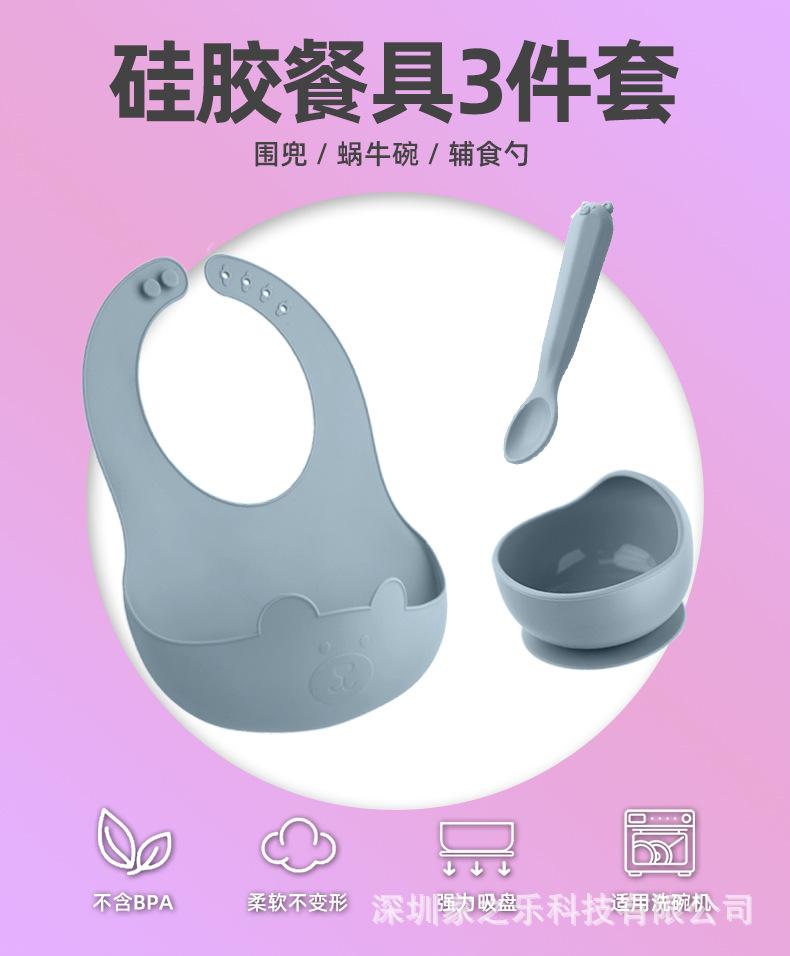 Cuenco de silicona con forma de caracol para bebé, cuchara para alimentos suplementarios, babero de silicona con dibujos animados, pantuflas, vajilla de silicona con forma de oso, 3 piezas