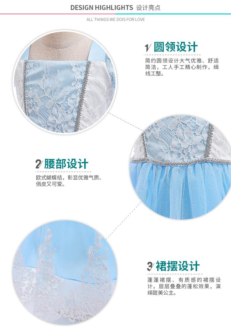 Comercio exterior transfronterizo europeo y americano, nuevo vestido de princesa Sofía de pelo largo, vestido de encaje bordado lateral para niña, disfraz de fiesta y actuación