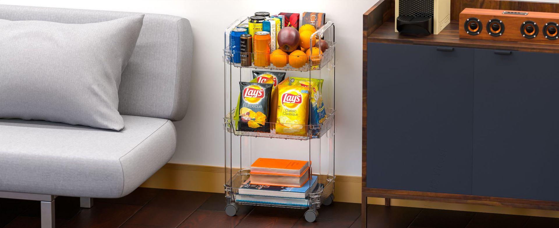 Transparent black color Large -3 layer-PET wheeled cart (cross-border box)