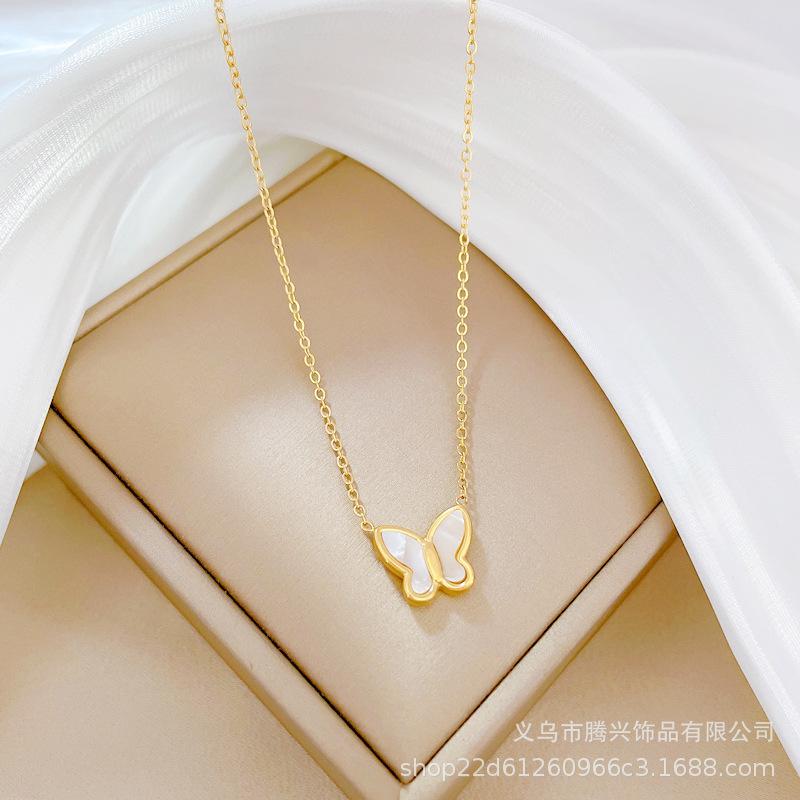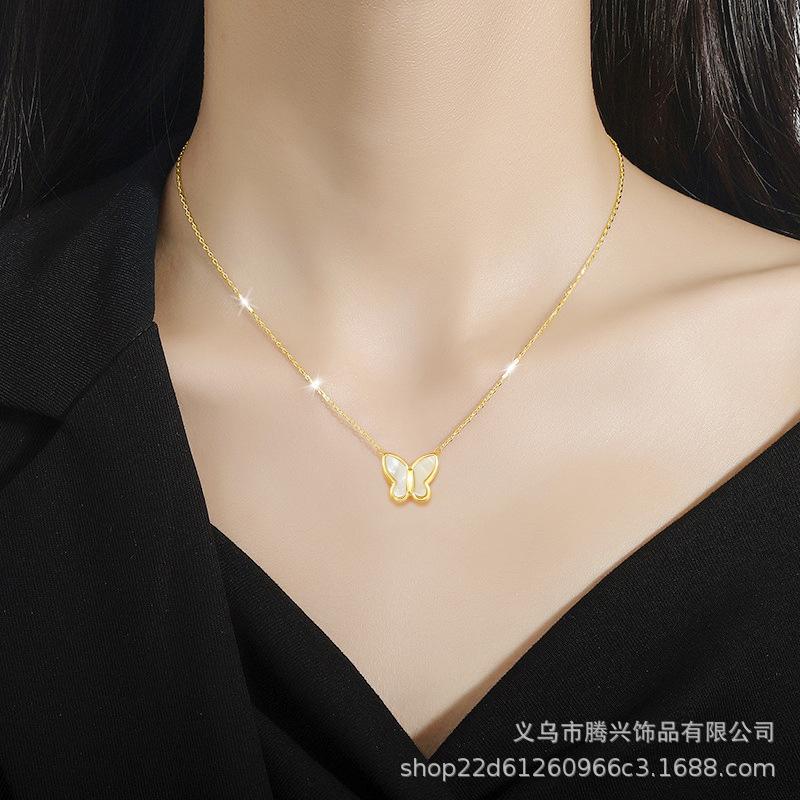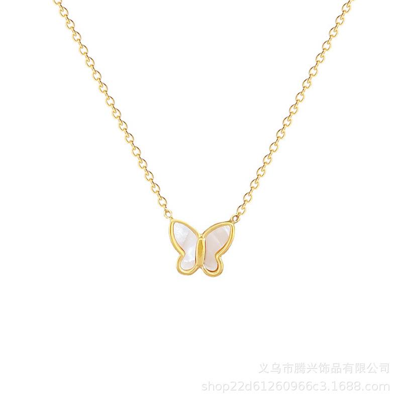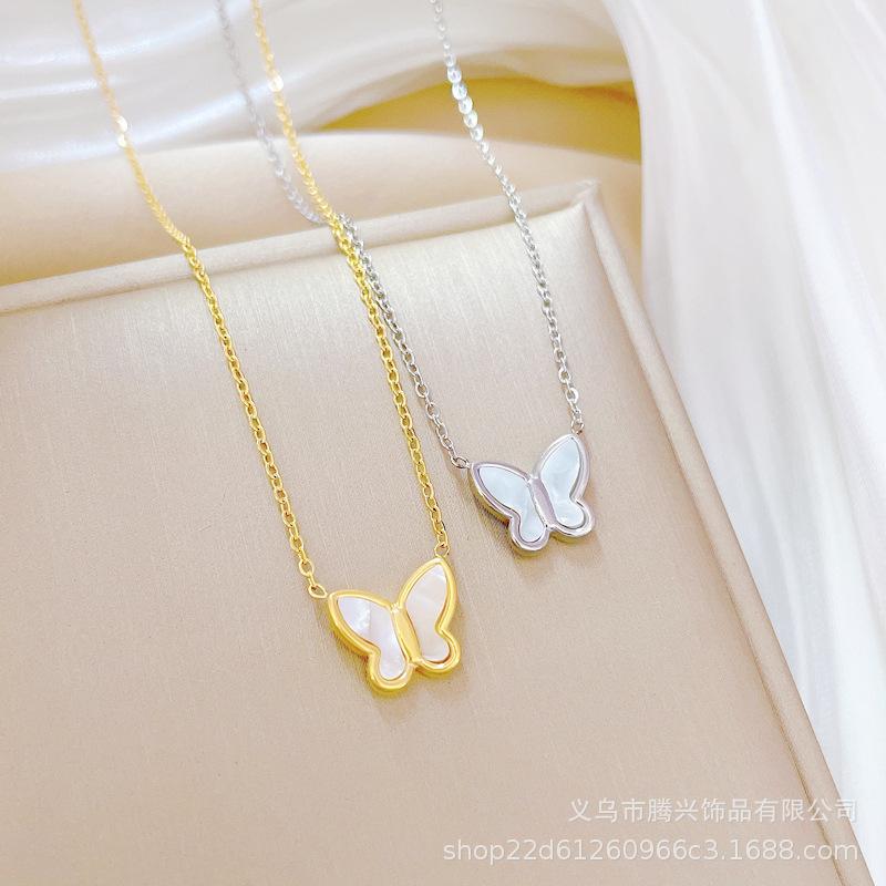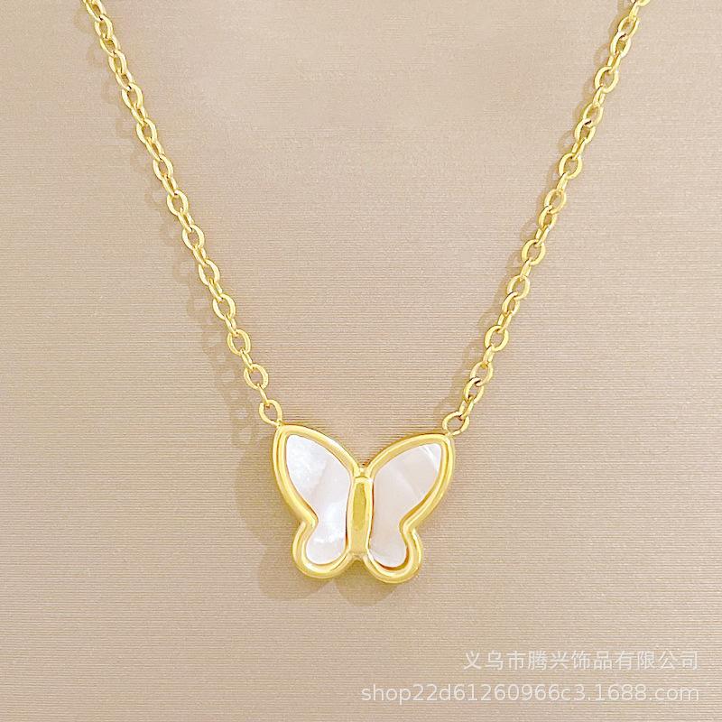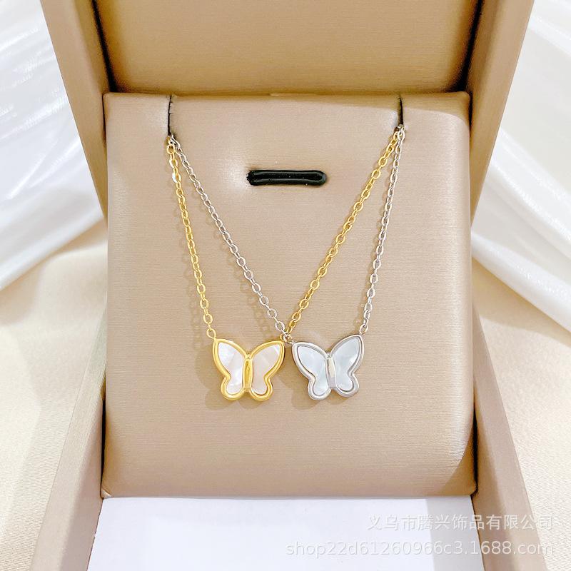 Collar de acero de titanio con diseño de mariposa y concha, ligero, de lujo, para mujer, estilo personalizado, sencillo y elegante, cadena de clavícula, joyería de acero de titanio.