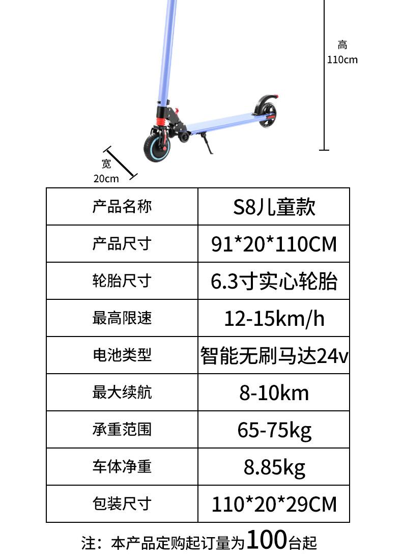 Scooter eléctrico para niños S8 transfronterizo de Amazon, scooter plegable con absorción de impactos, scooter de campus conveniente de dos ruedas