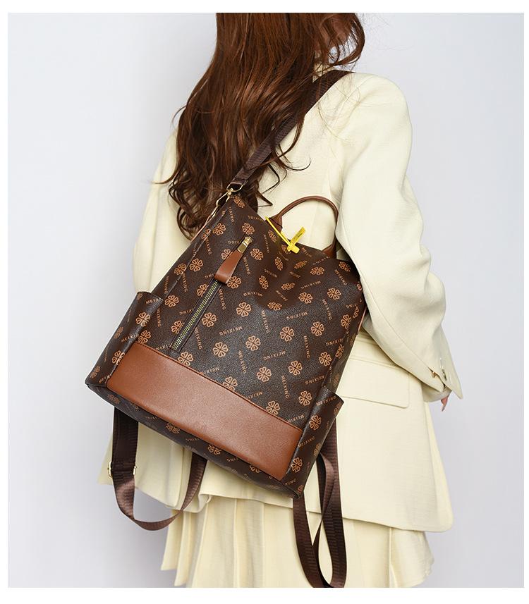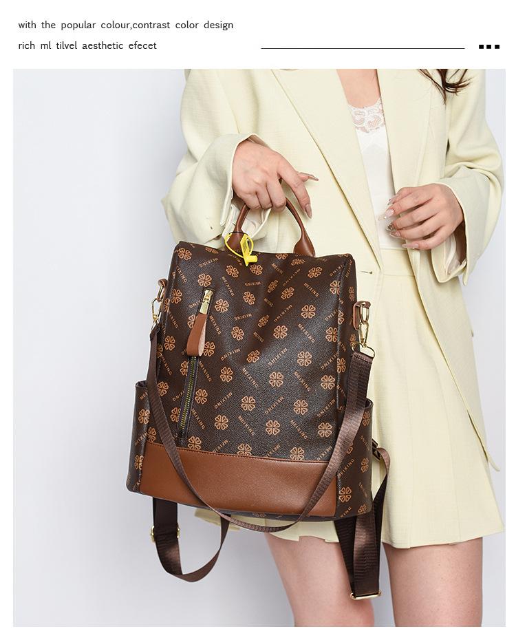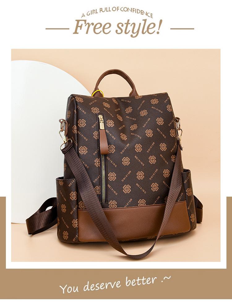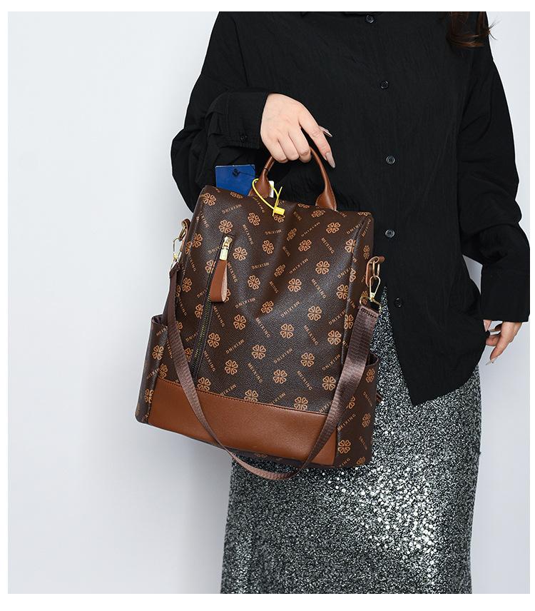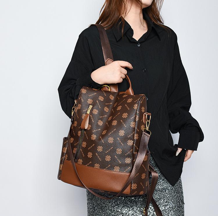 Mochila antirrobo para mujer, nueva mochila de moda 2024 con estampado vintage, sencilla y de gran capacidad, informal, para viajes escolares.