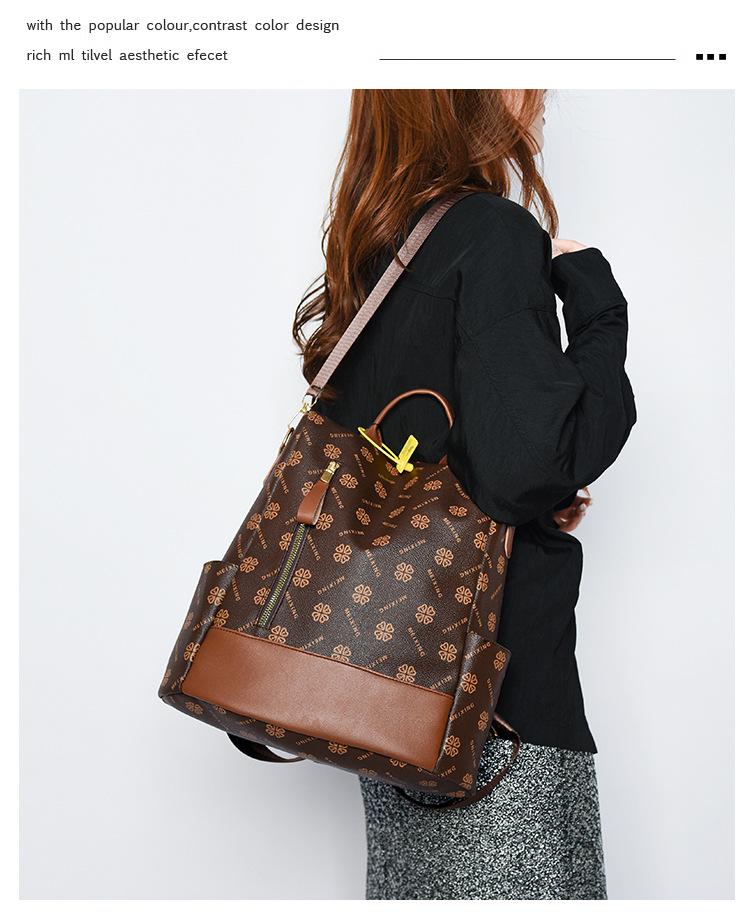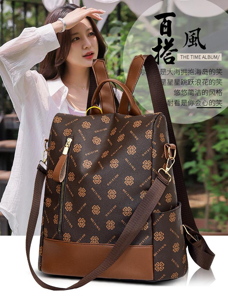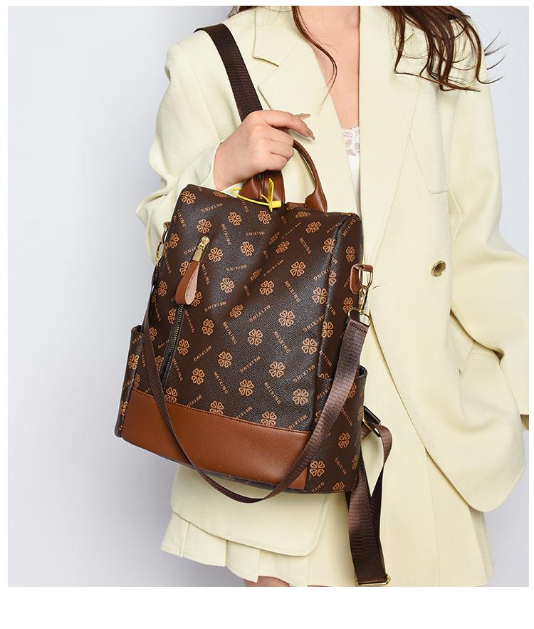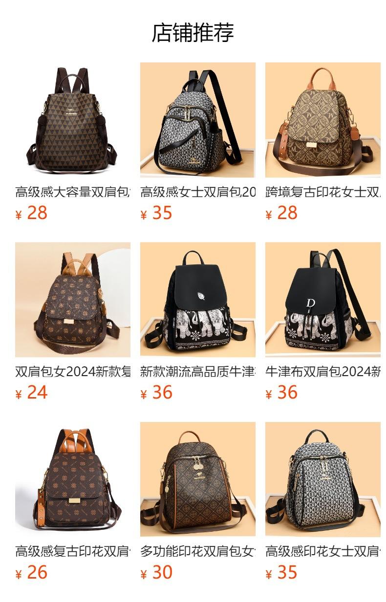 Mochila antirrobo para mujer, nueva mochila de moda 2024 con estampado vintage, sencilla y de gran capacidad, informal, para viajes escolares.