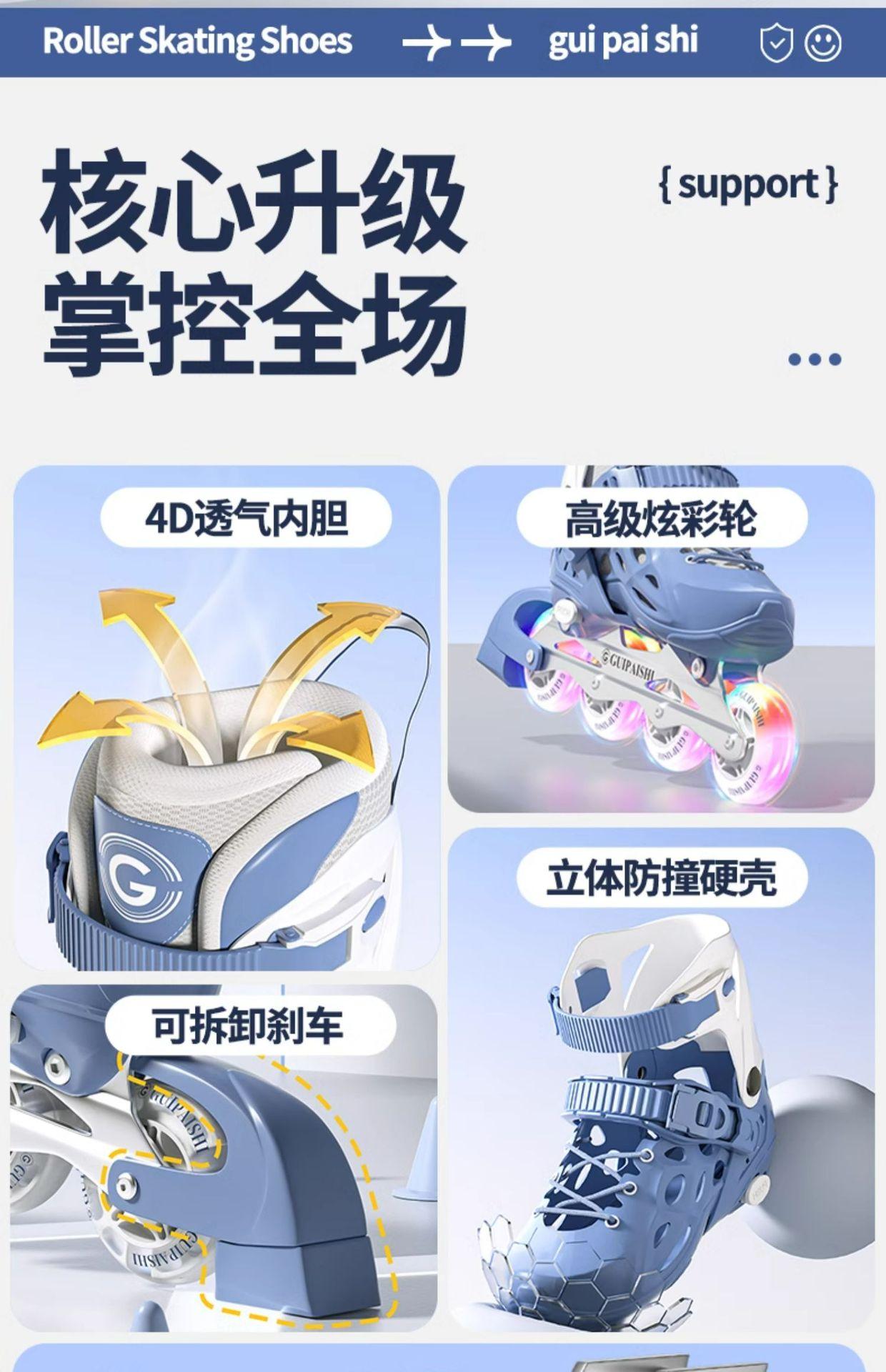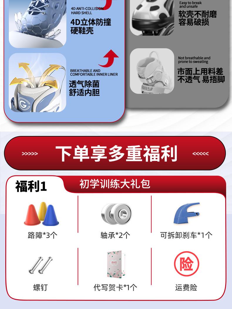 Pipi powder upgraded double bar buckle [single shoes + 7-piece set of protective gear + roadblock gift pack]