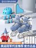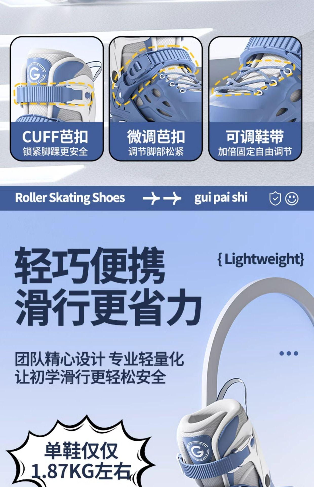 Mist blue upgraded double bar buckle [single shoes + protective gear 7-piece set + roadblock gift pack]