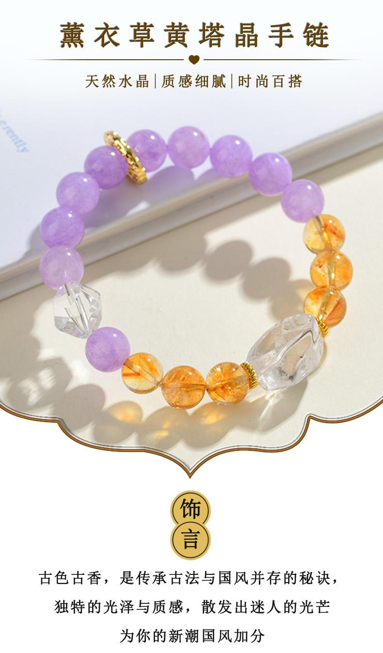 [Nombre del producto]: Pulsera de cristal de torre amarilla lavanda