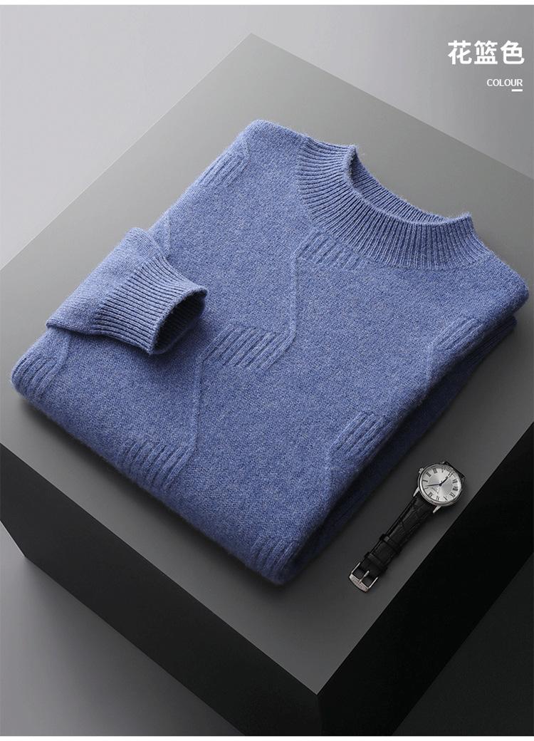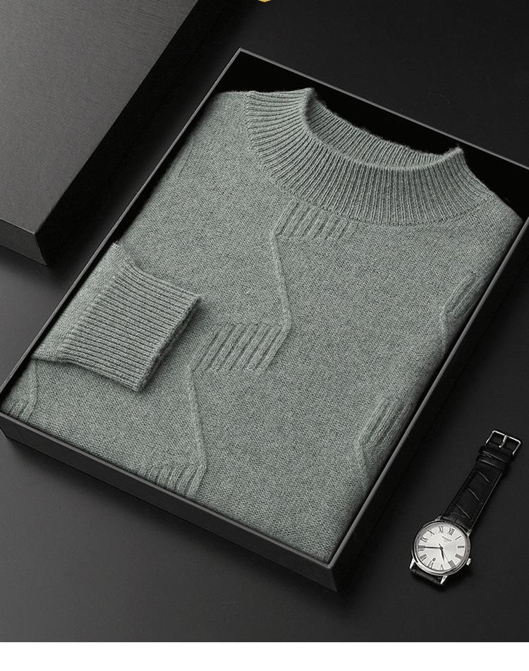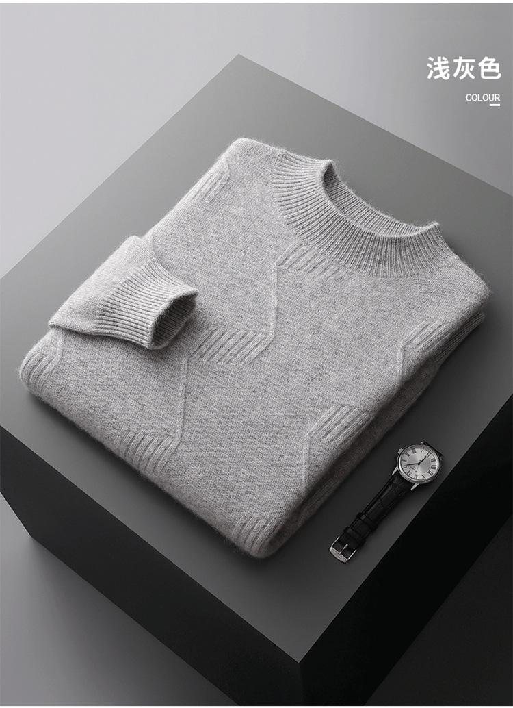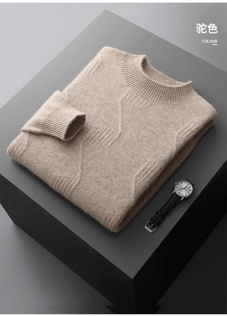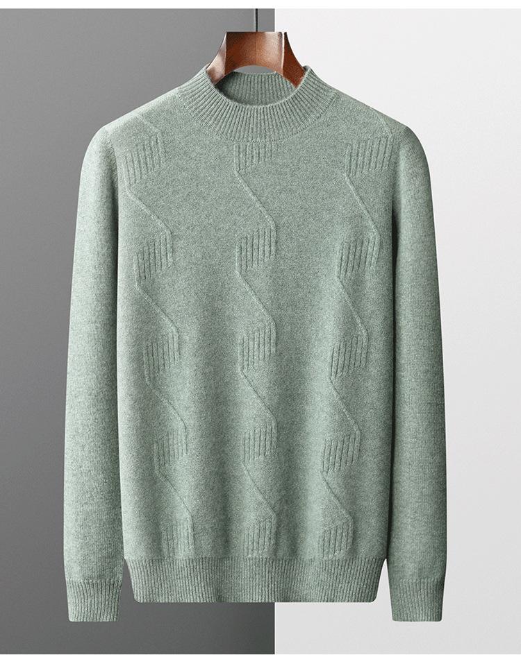 Suéter de cachemira de montaña para hombre, otoño e invierno, grueso, de punto, cuello alto medio, con flores retorcidas, suéter básico, suéter de cachemira pura para hombre.