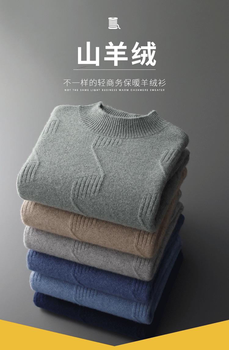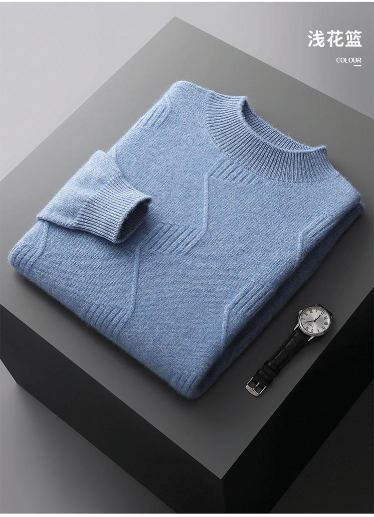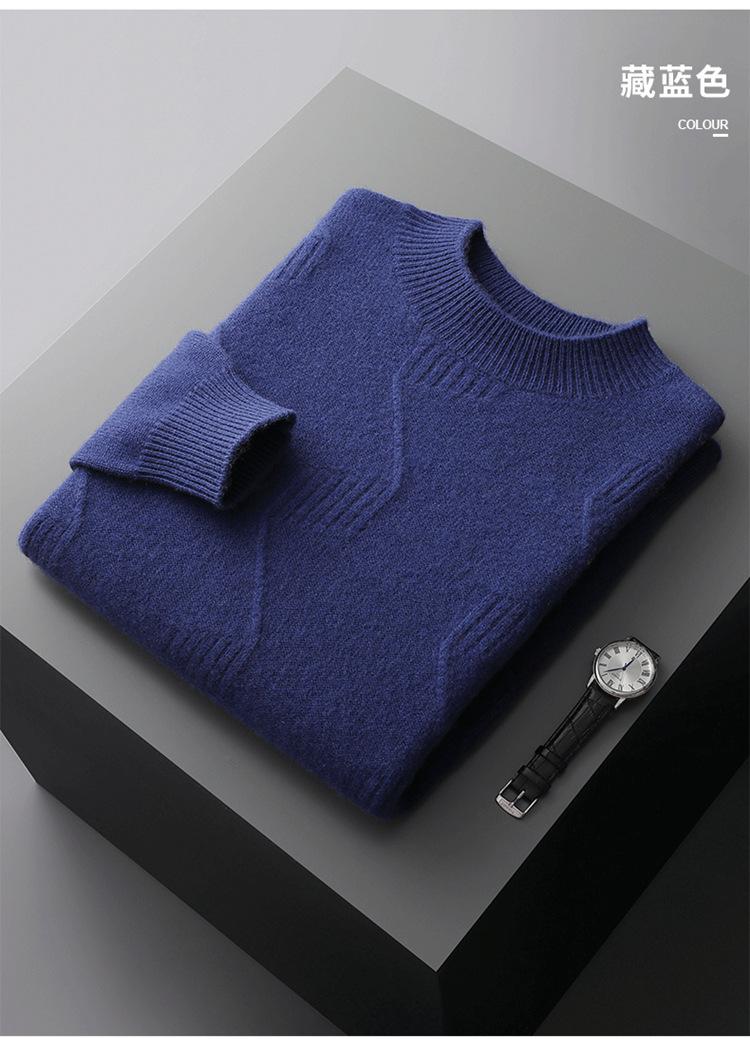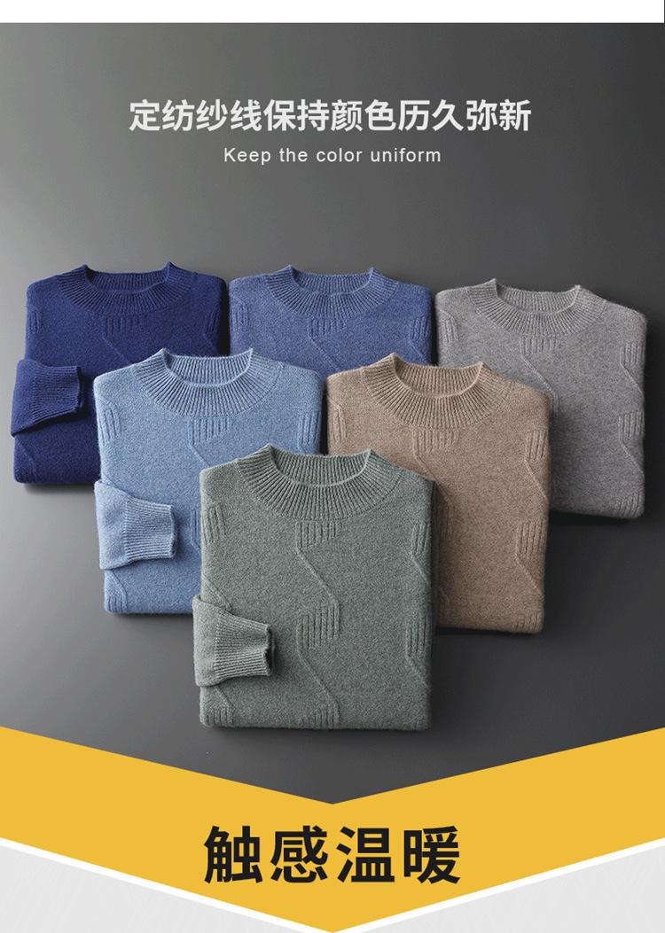 Suéter de cachemira de montaña para hombre, otoño e invierno, grueso, de punto, cuello alto medio, con flores retorcidas, suéter básico, suéter de cachemira pura para hombre.