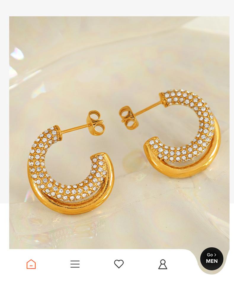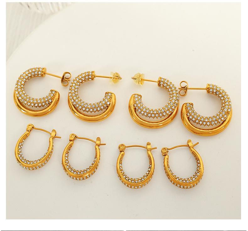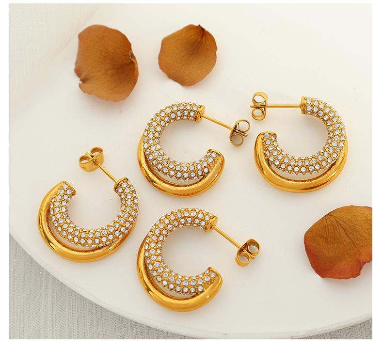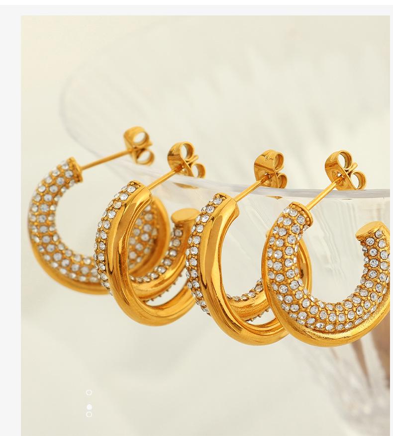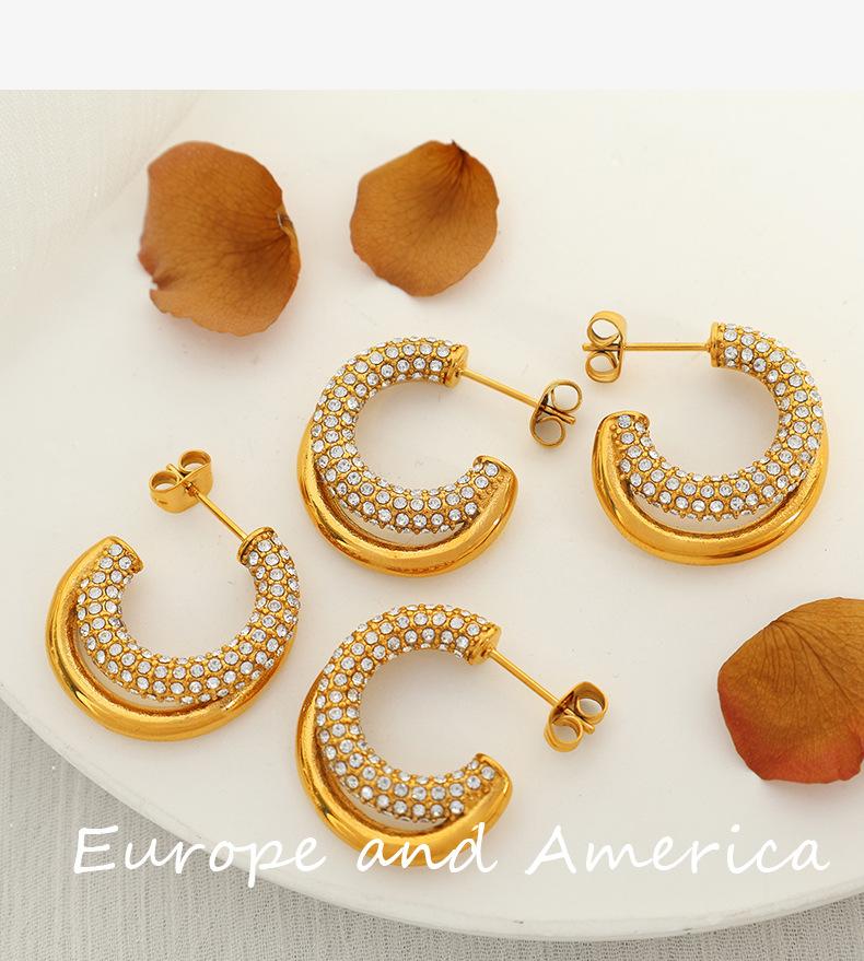 Aretes Elegantes Medievales Europeos y Americanos con Incrustaciones de Diamante de Zirconio Geométricos en Forma de C Personalizados de Moda Aretes de Diamante Completo para Mujer de Lujo Accesible y a la Moda