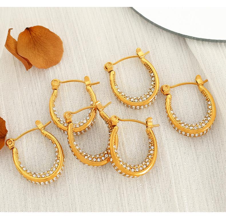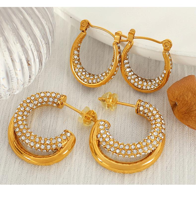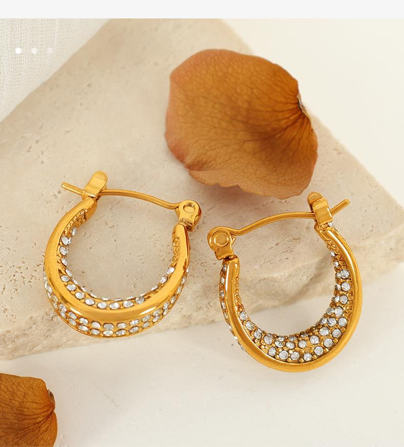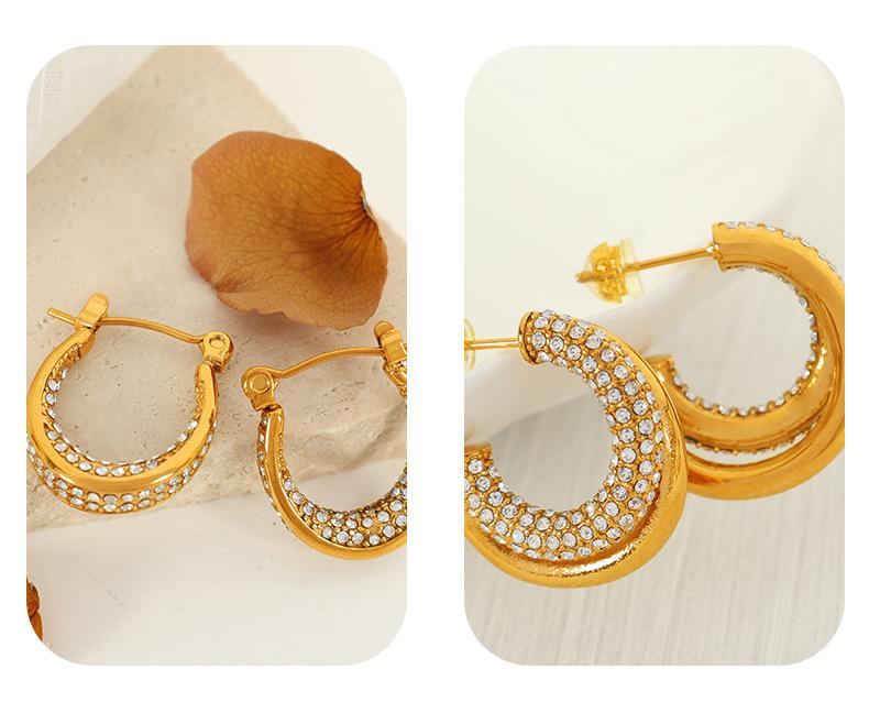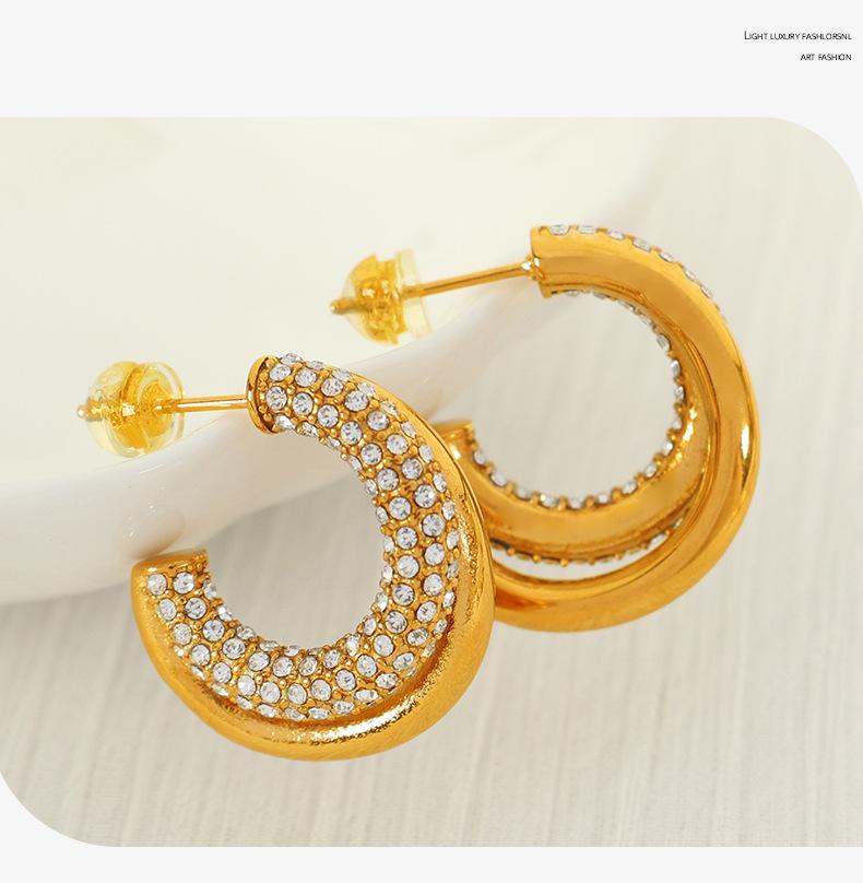 Aretes Elegantes Medievales Europeos y Americanos con Incrustaciones de Diamante de Zirconio Geométricos en Forma de C Personalizados de Moda Aretes de Diamante Completo para Mujer de Lujo Accesible y a la Moda
