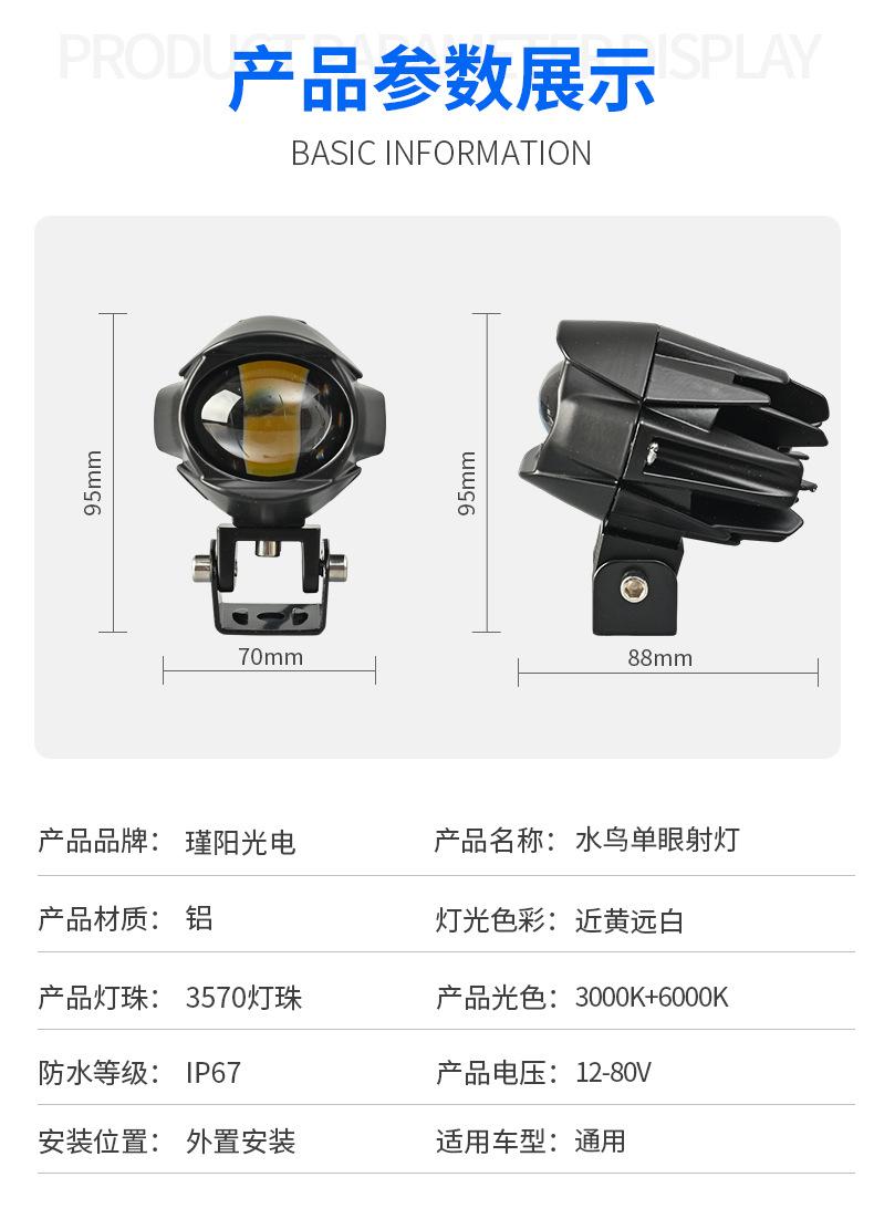 Faro LED Monocular para Motocicleta Waterbird Transfronterizo Luz Cercana y Lejana Faros Vehículo Eléctrico Externo Motocicleta Modificada