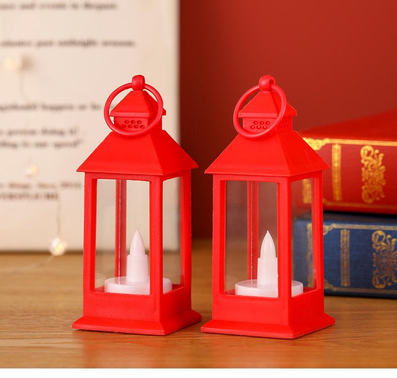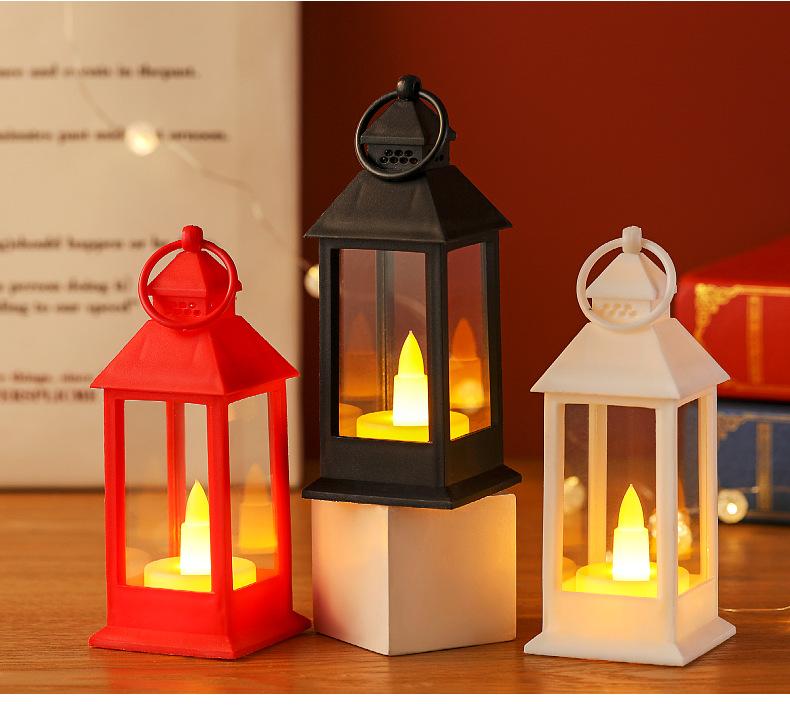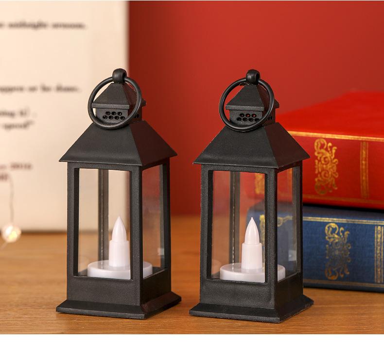 Lámpara de estilo europeo estilo retro, pequeña lámpara de aceite navideña, luz LED luminosa de noche, vela de plástico, lámpara de viento, adornos decorativos de escritorio