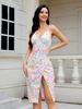 Vestido de Verano 2025 Europeo y Americano Nuevo de Amazon para Mujer Sexy Moda Estampado Lazo Abertura Tirantes