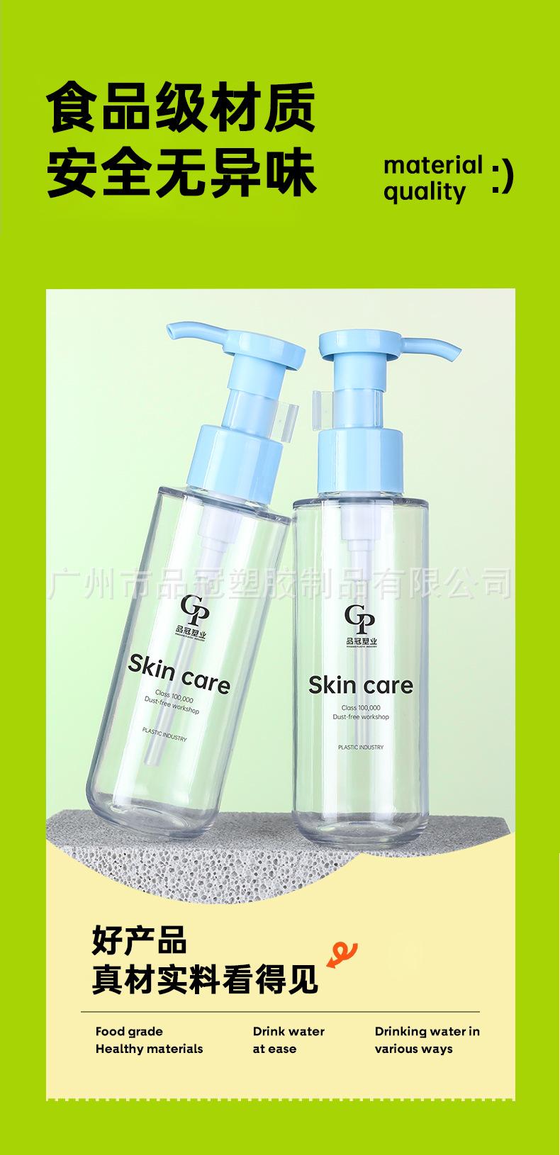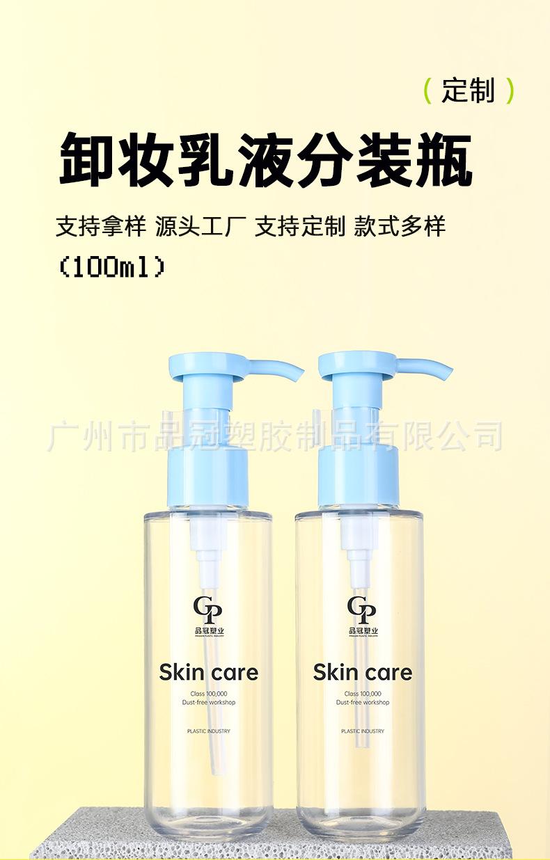 Botella vacía de plástico PET transparente de hombro plano de 100 ml, botella con pulsador para emulsión, botella cosmética para leche corporal, botella de viaje portátil