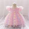 Vestido infantil transfronterizo 2024, vestido de princesa para niña de un año, vestido de princesa con estampado de seda y mangas abullonadas.