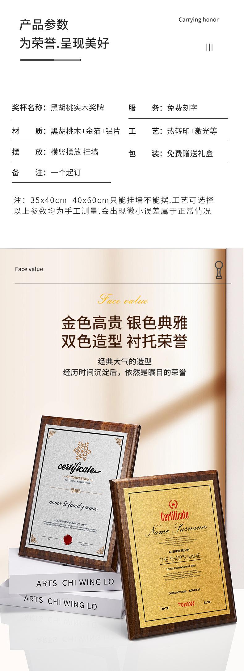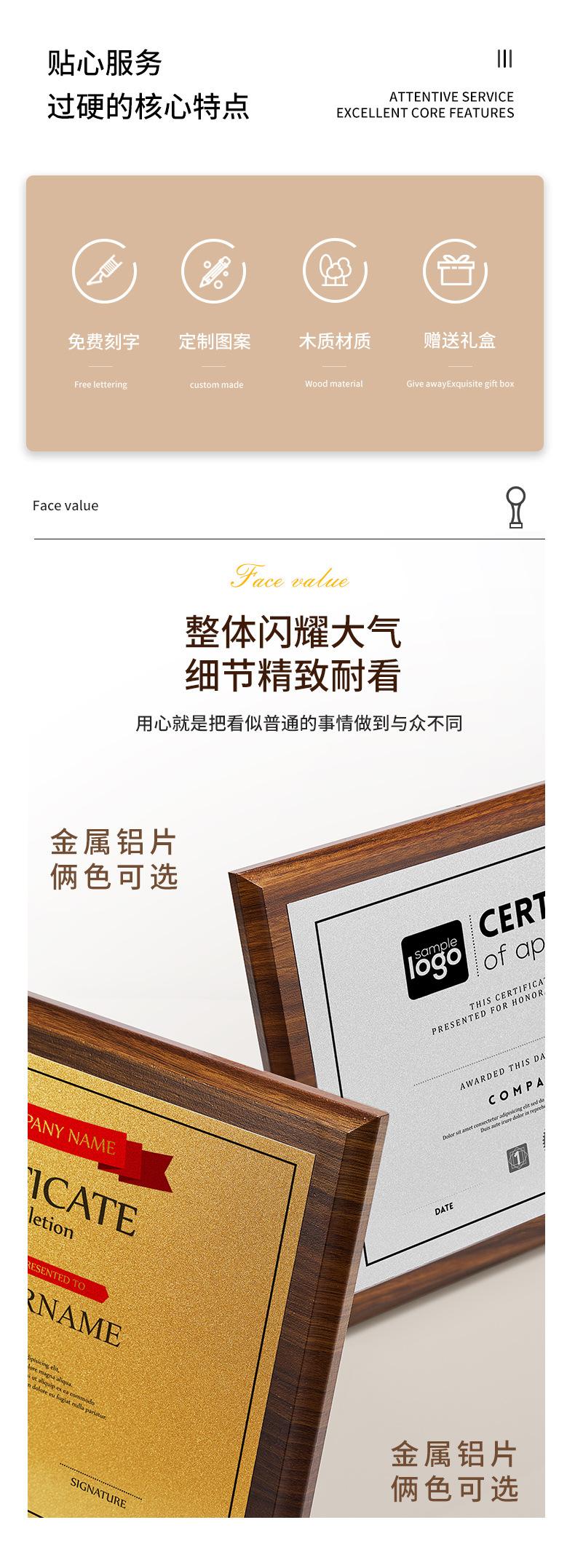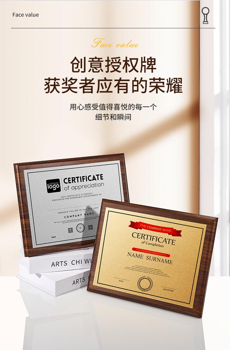 Medalla Placa de Honor Creativa de Alta Calidad Bronce Madera Premio Presentación Tarjeta de Autorización de Agente Listado Imitación Nogal Medalla
