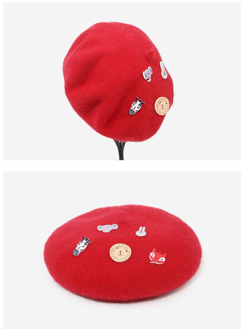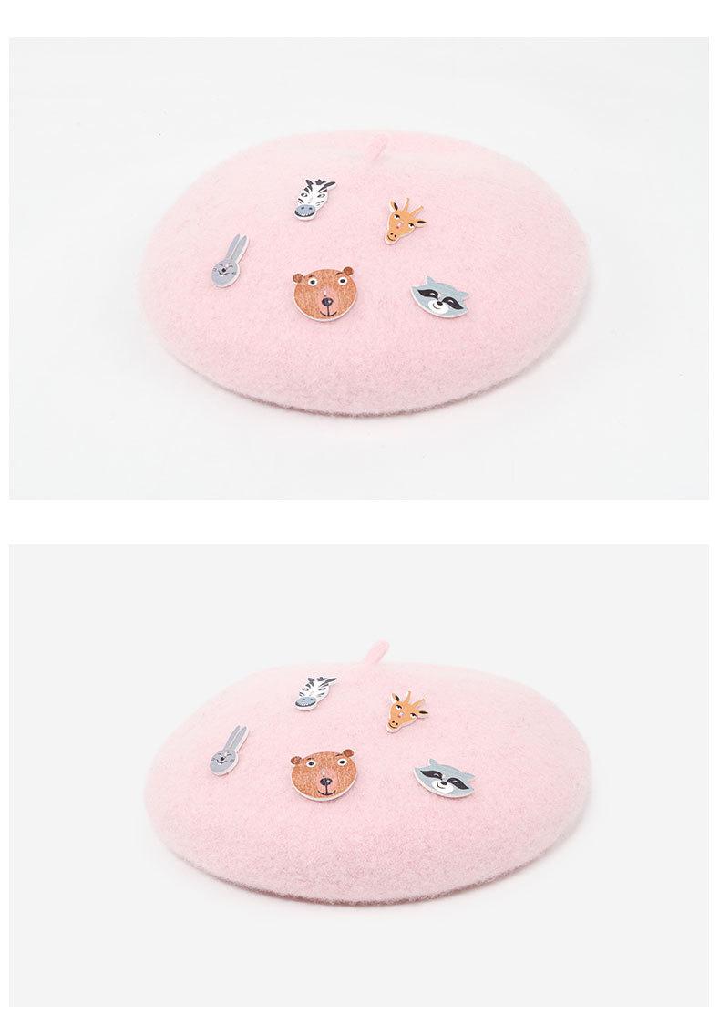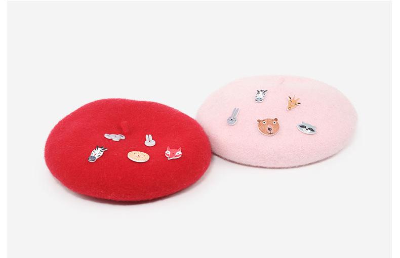 Boina rosa linda para niños decoración de animalito sombrero rosa lindo dulce caricatura lana sombrero de mujer
