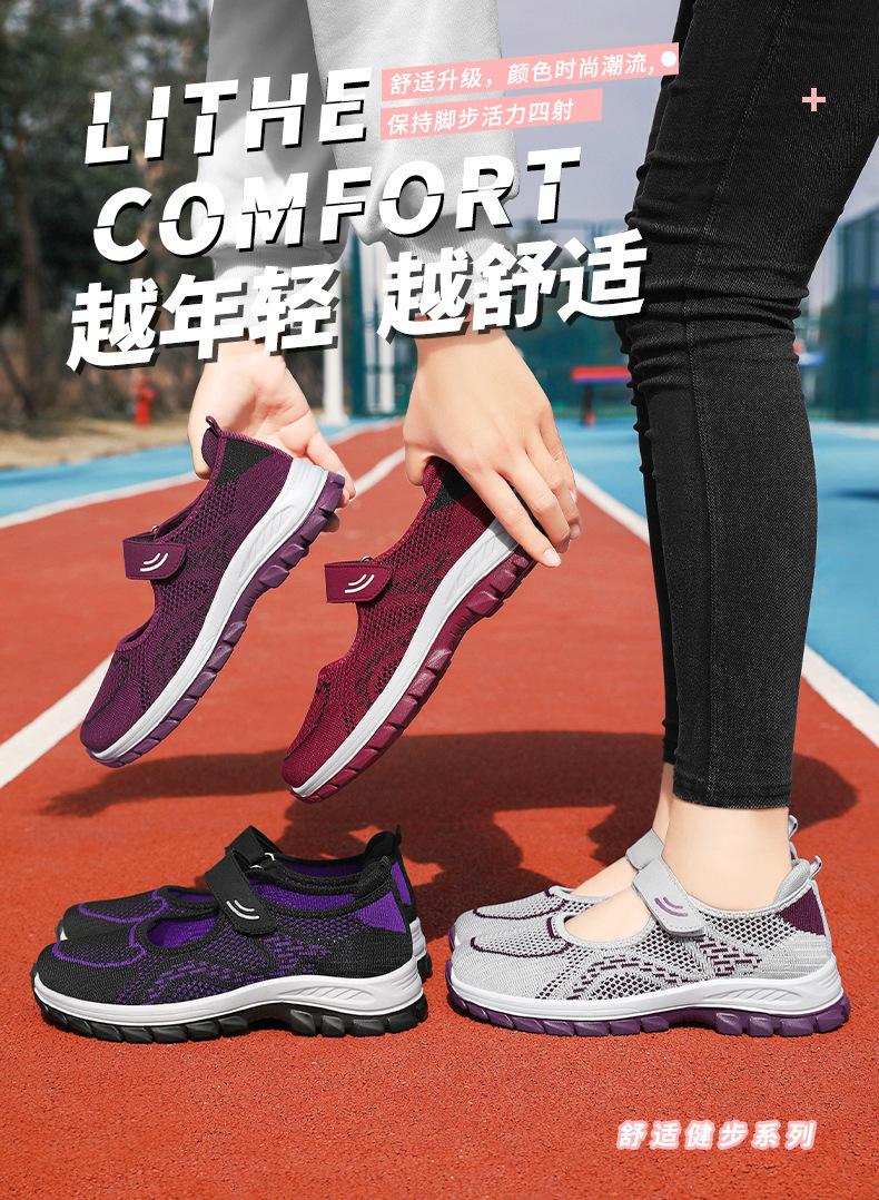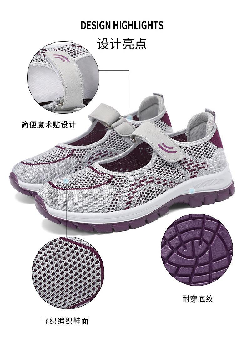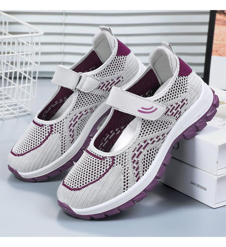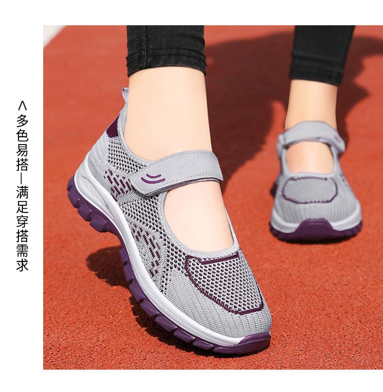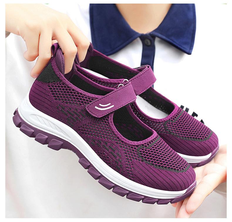 Zapatos para Mujer 2025 Primavera Nuevos Zapatos para Madre de Mediana Edad y Anciana Velcro Suela Suave Tejido Flyknit Transpirables Zapatos Casuales para Mujer