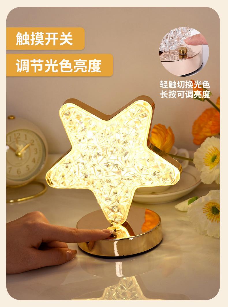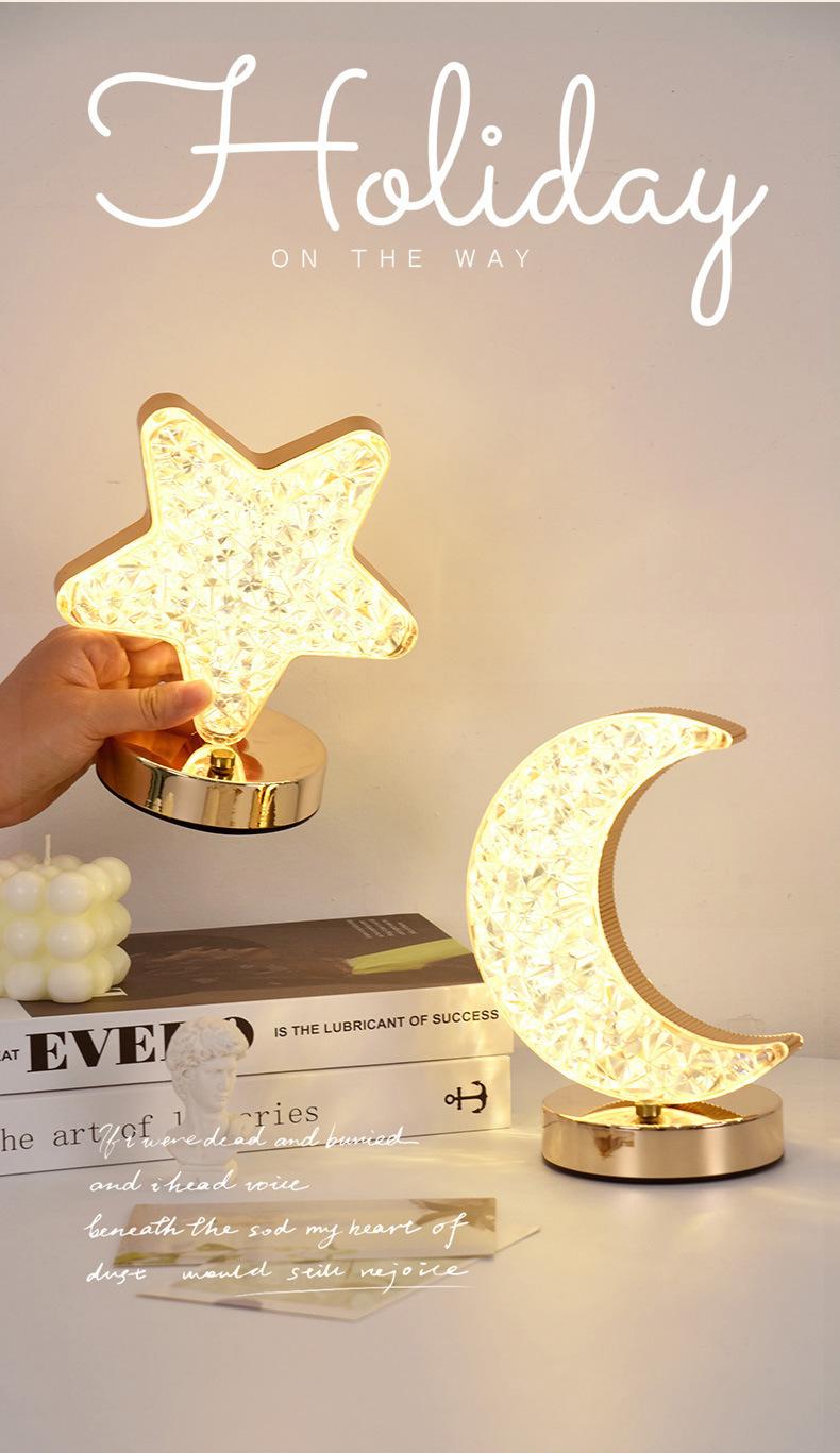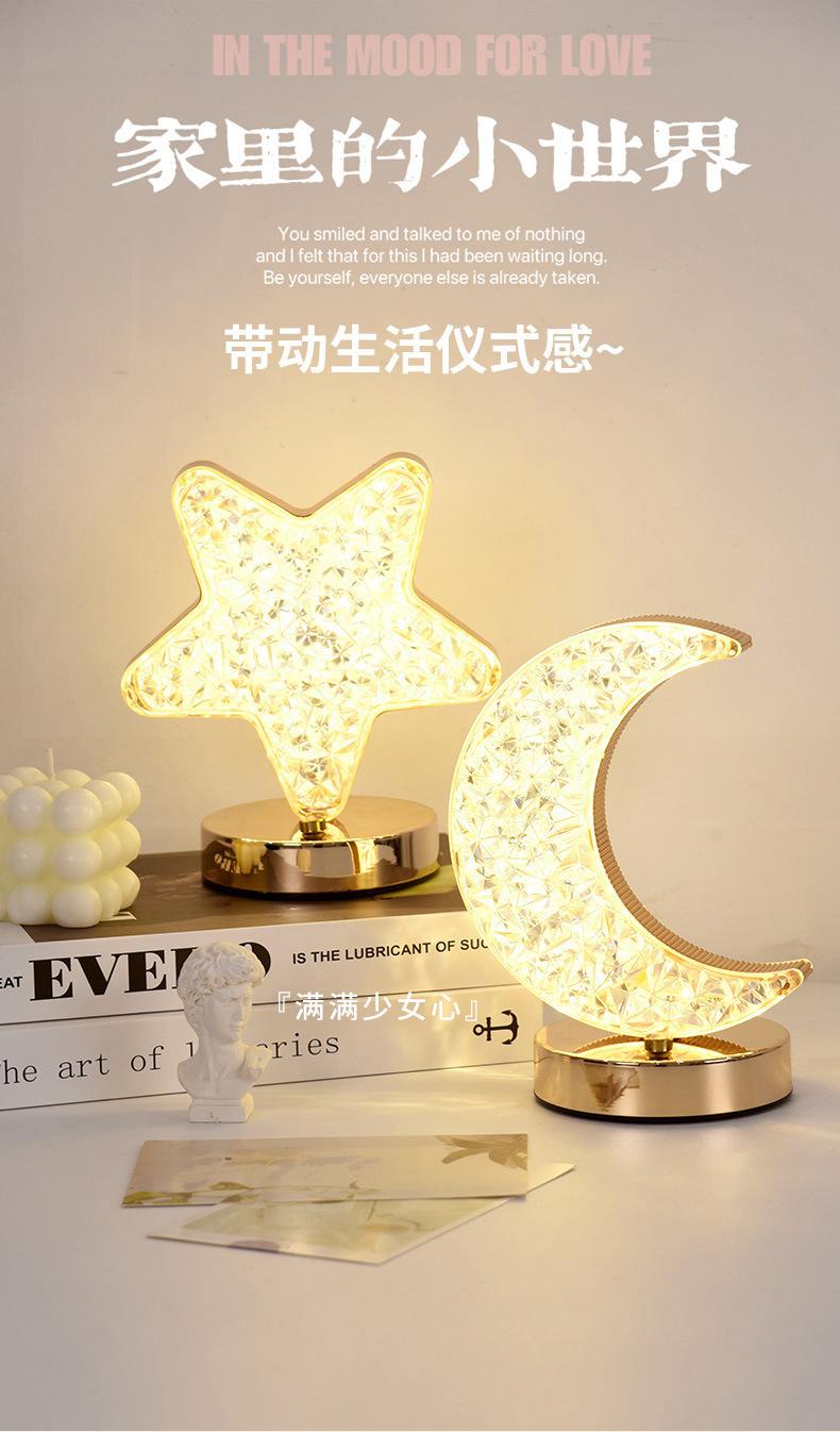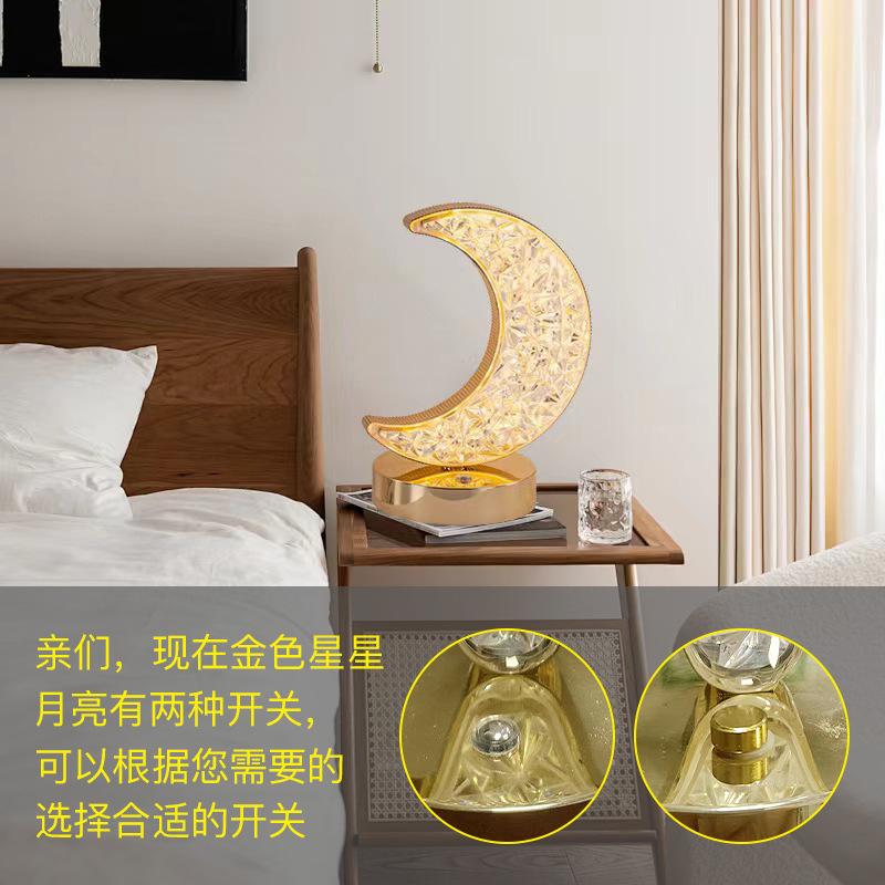 Lámpara de noche personalizada para dormitorio, decoración de mesa, lámpara de ambiente de estrella y luna para niña, luz nocturna con carga táctil, regalo
