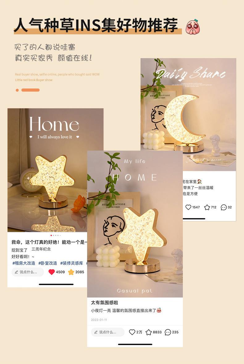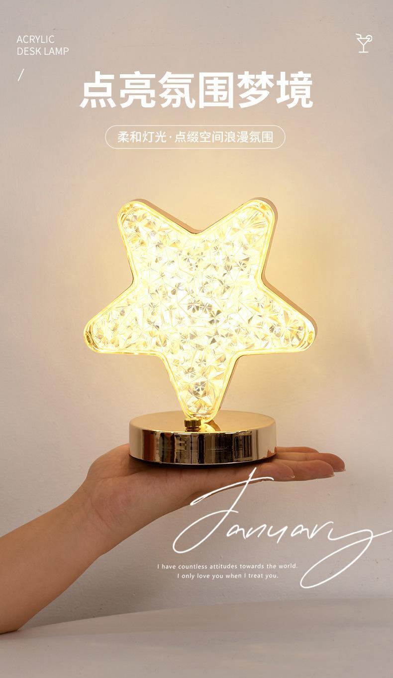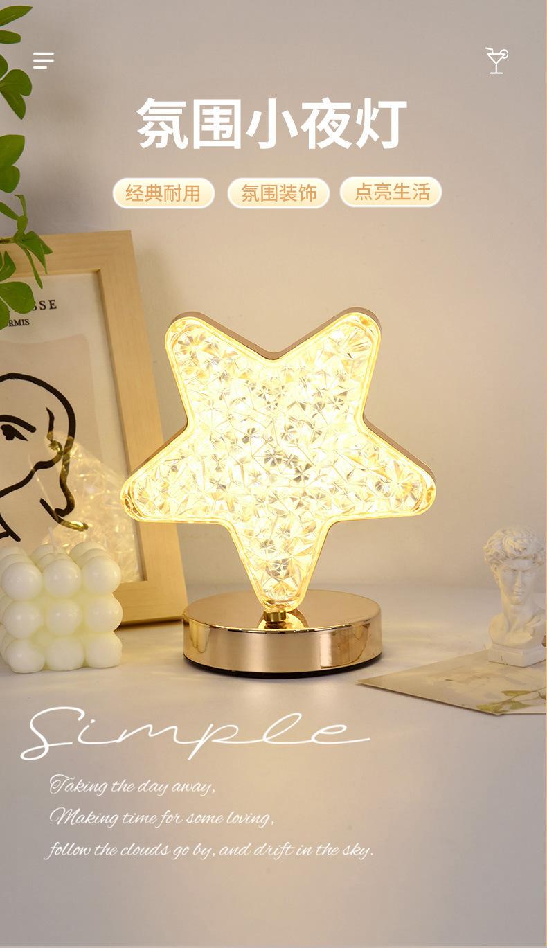 Lámpara de noche personalizada para dormitorio, decoración de mesa, lámpara de ambiente de estrella y luna para niña, luz nocturna con carga táctil, regalo