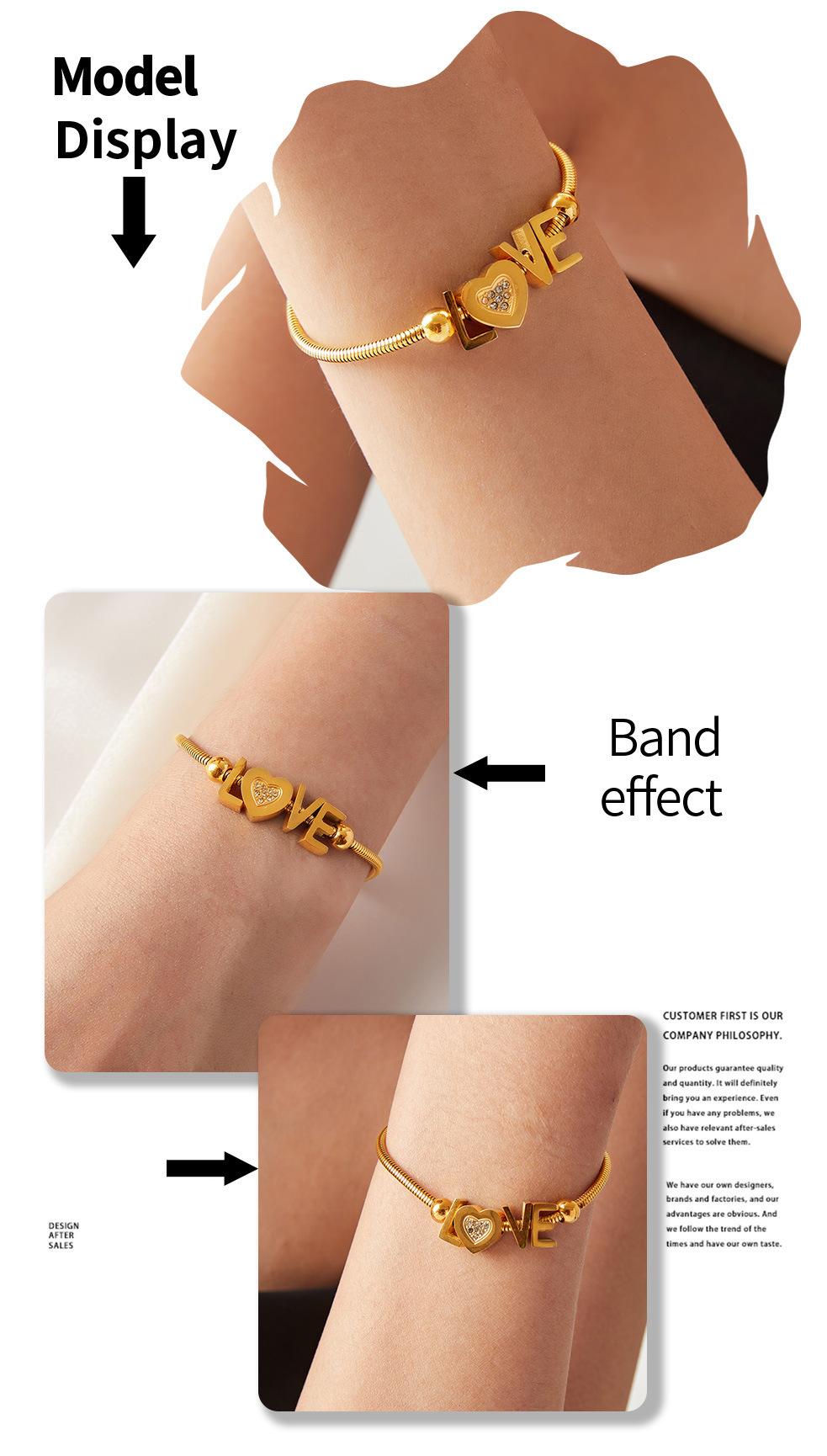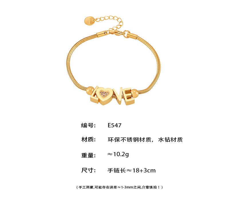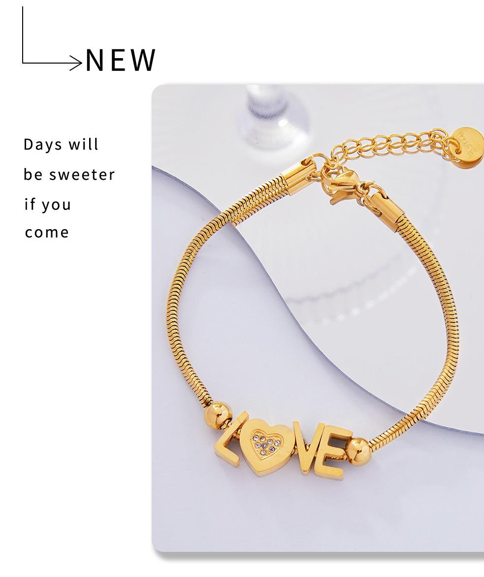 Pulsera LOVE con Letra Dorada Caliente Transfronteriza Amor Diamante Acero Inoxidable Chapado Oro de 18K Pulsera de Temperamento para Novia