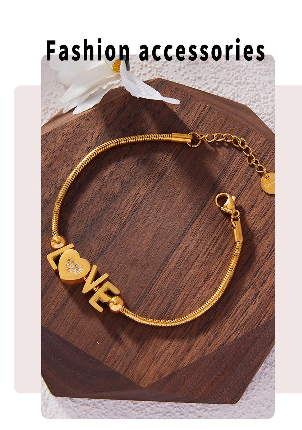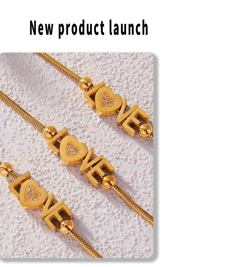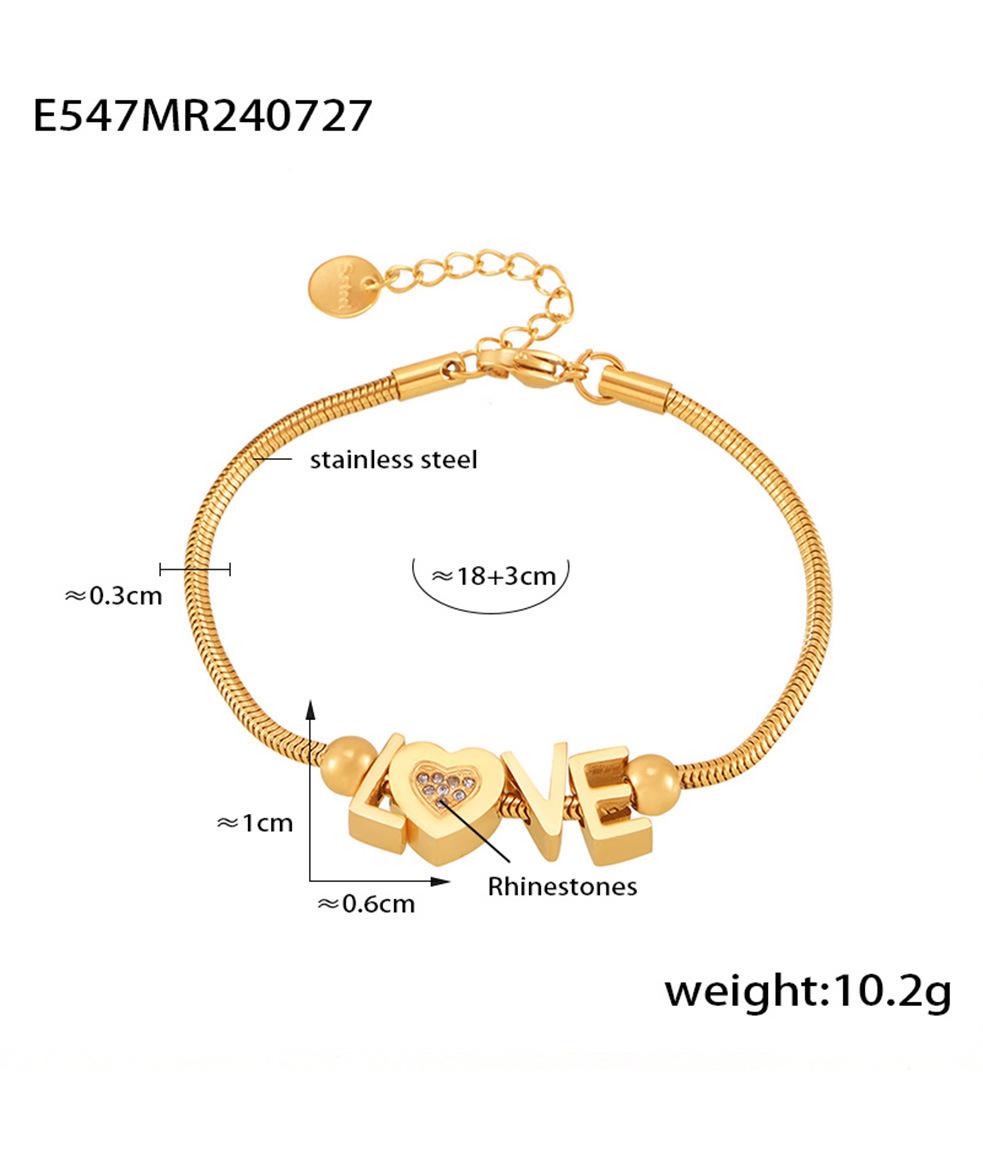 Pulsera LOVE con Letra Dorada Caliente Transfronteriza Amor Diamante Acero Inoxidable Chapado Oro de 18K Pulsera de Temperamento para Novia