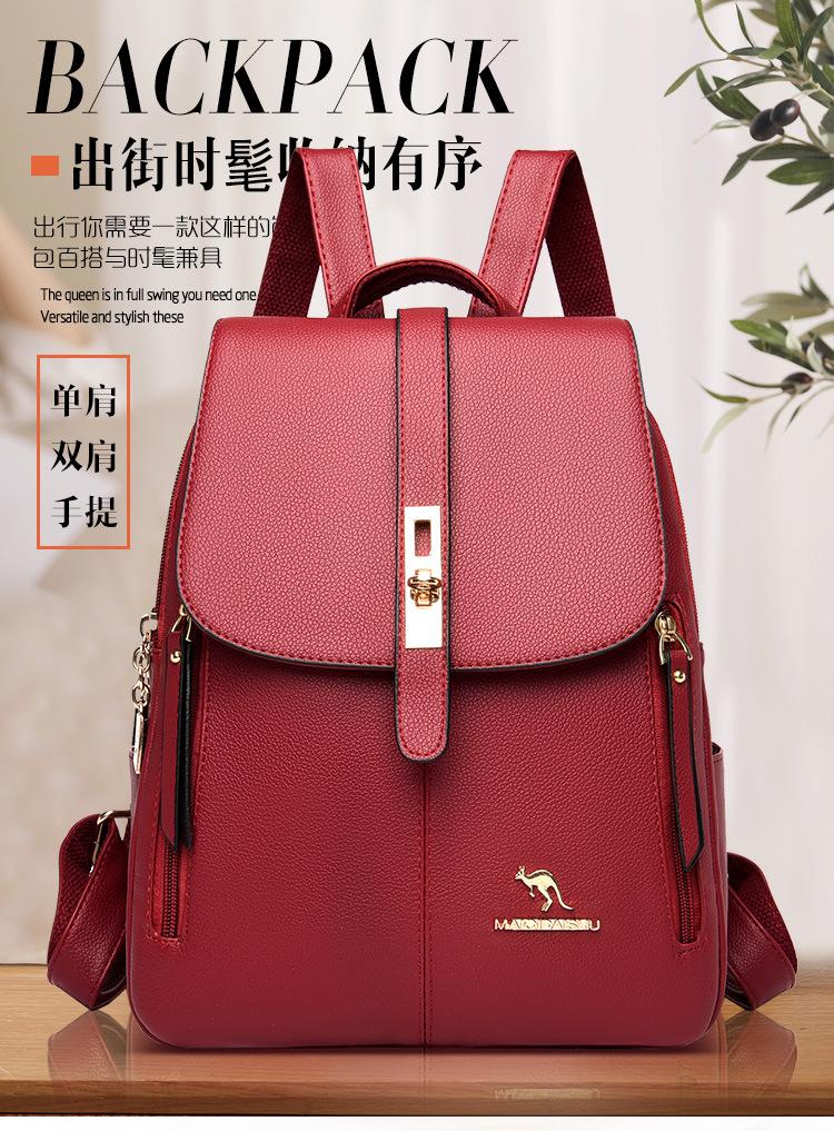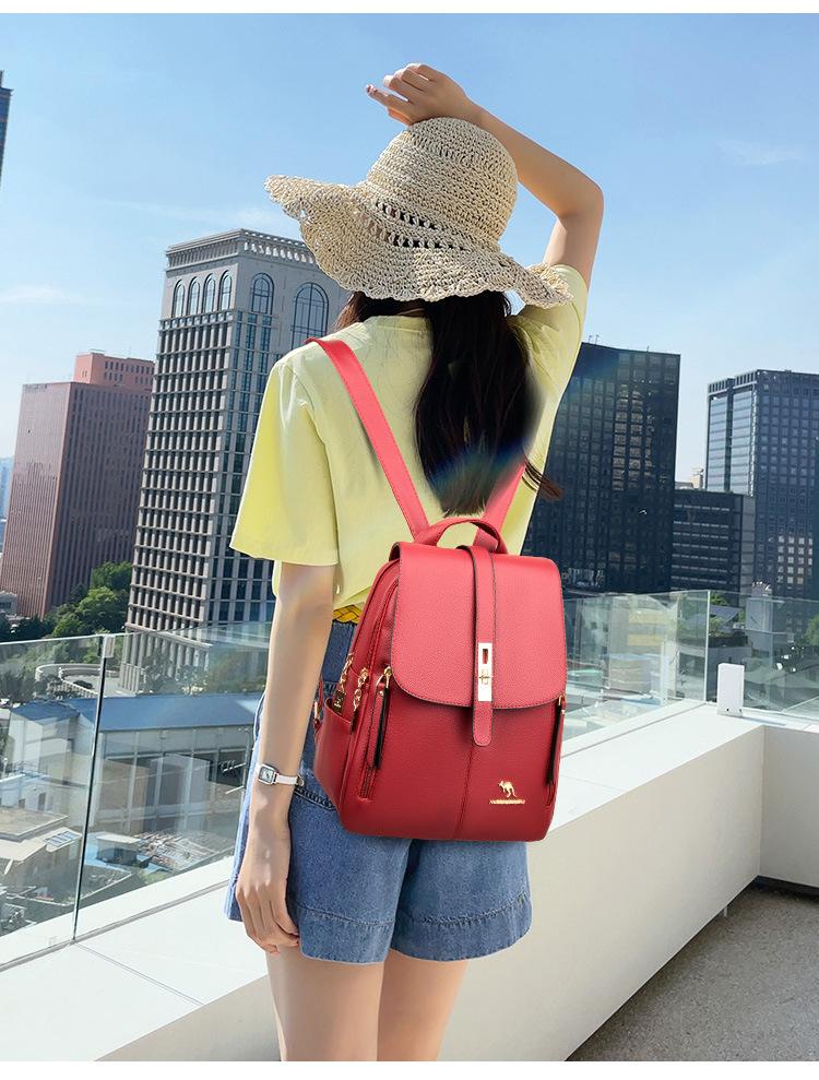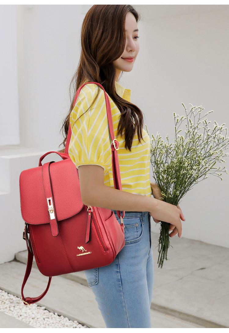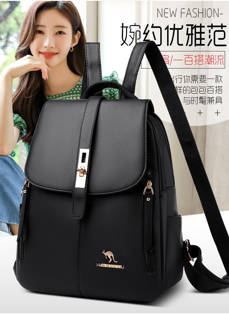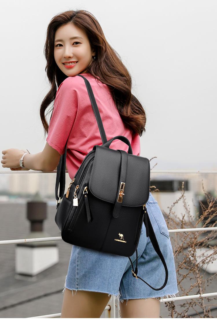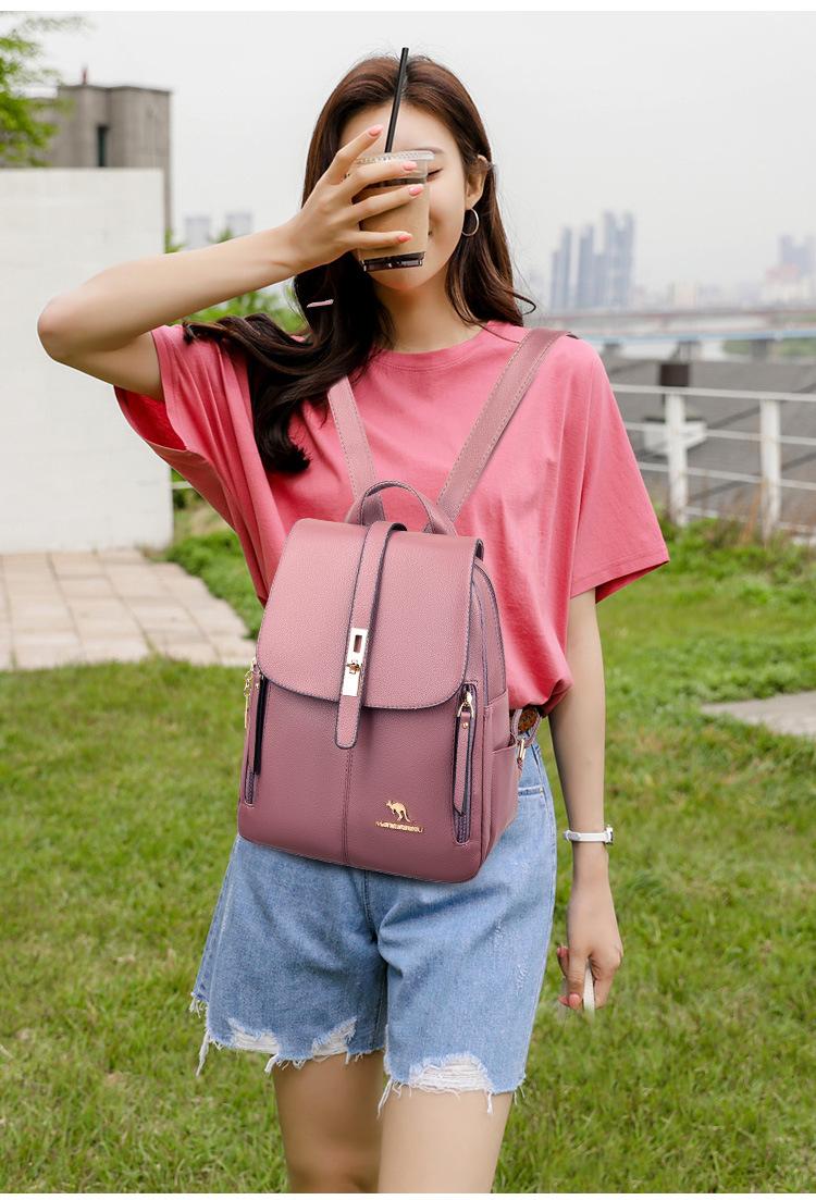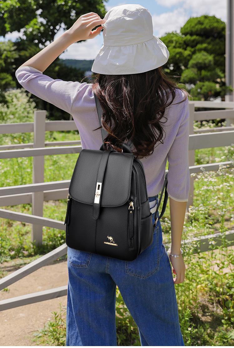 Mochila de Cuero Suave para Mujer 2024 Nuevo Estilo Coreano Mochila de Viaje Sencilla de Gran Capacidad Cuero Suave Resistente al Desgaste