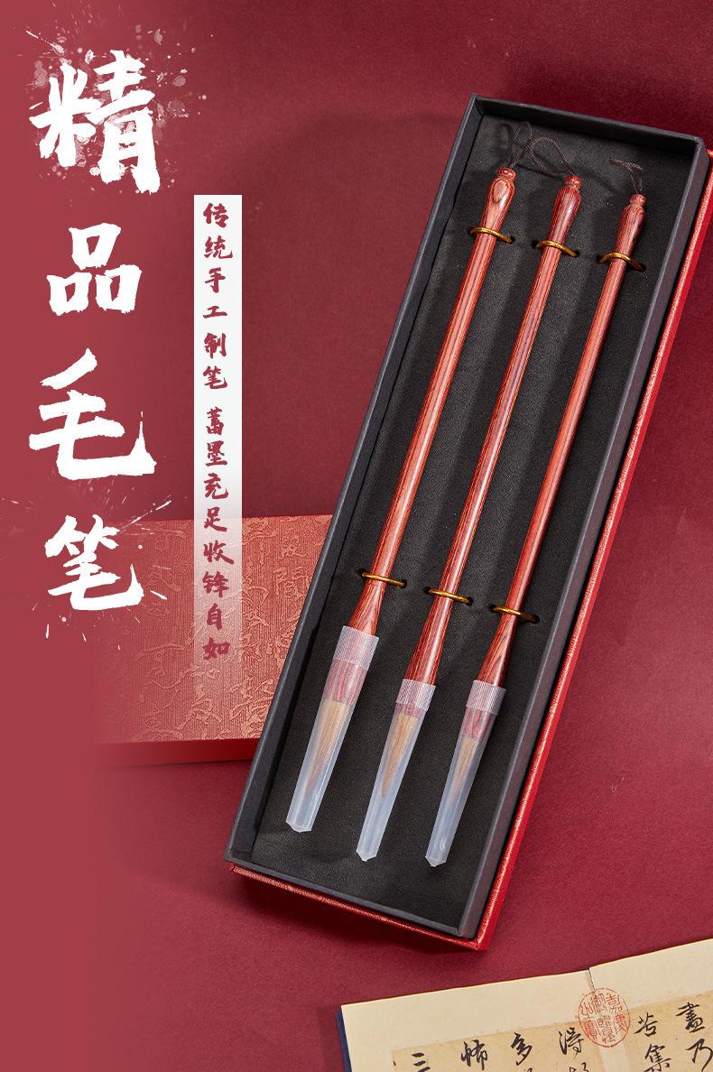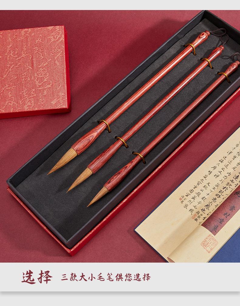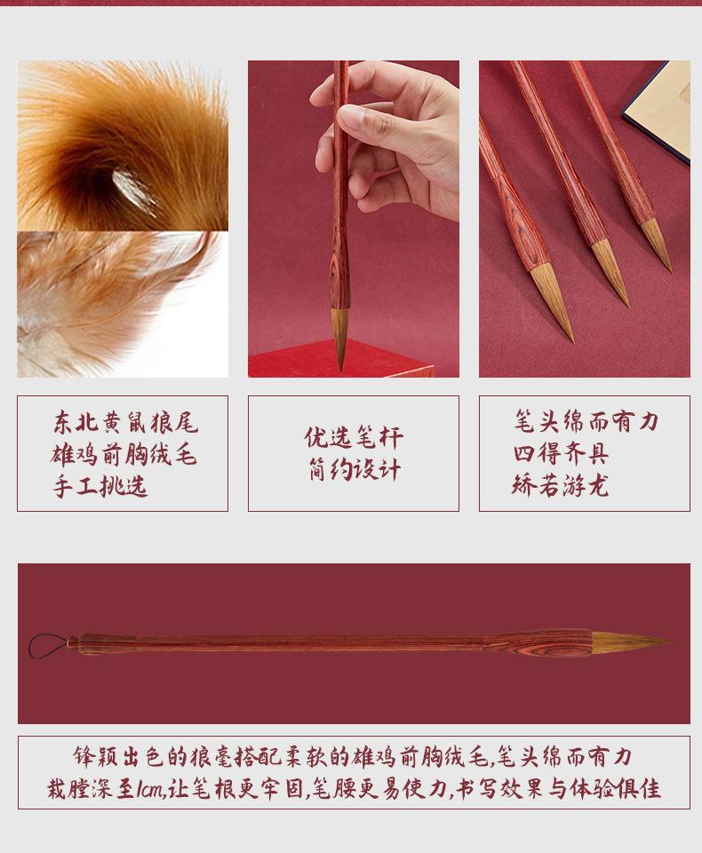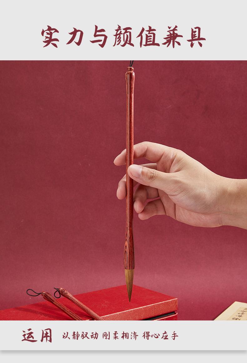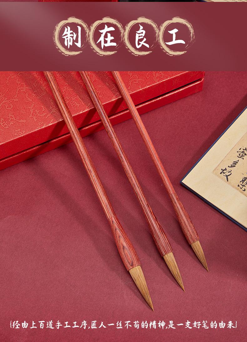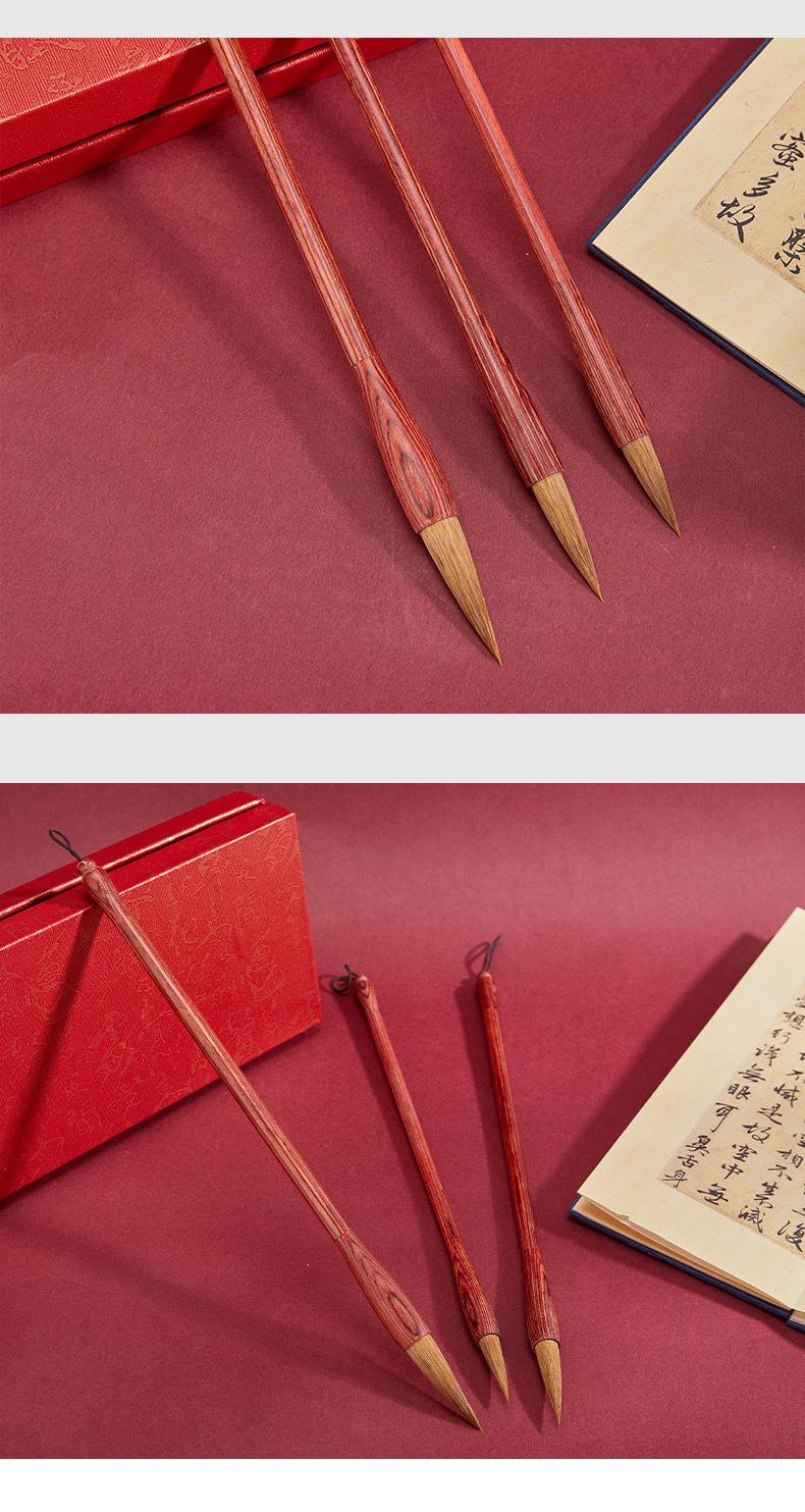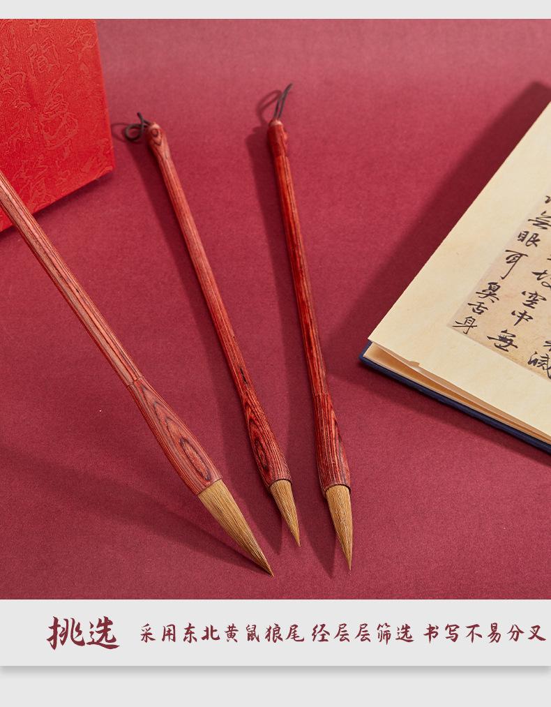 Fábrica al por mayor, clase de entrenamiento de caligrafía, pluma de práctica, sándalo rojo, estuche grande y mediano pequeño, juego de pinceles de pelo de lobo puro para adultos