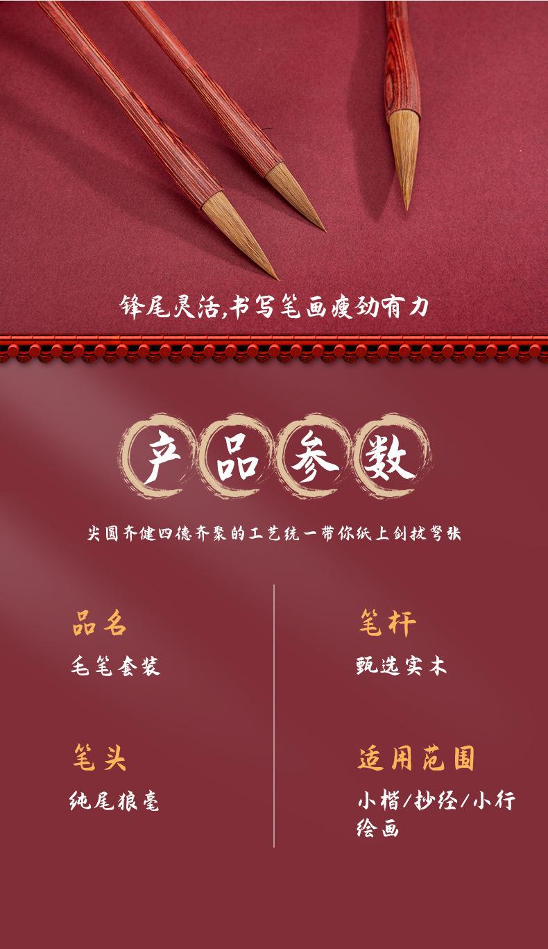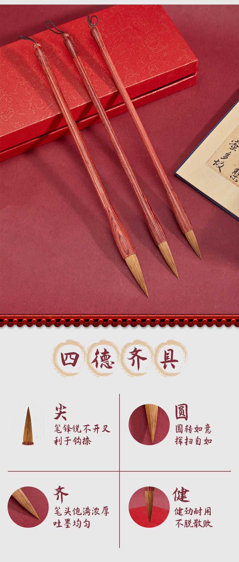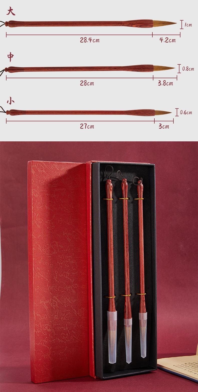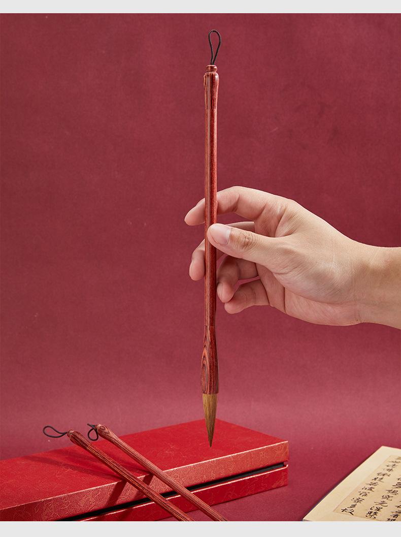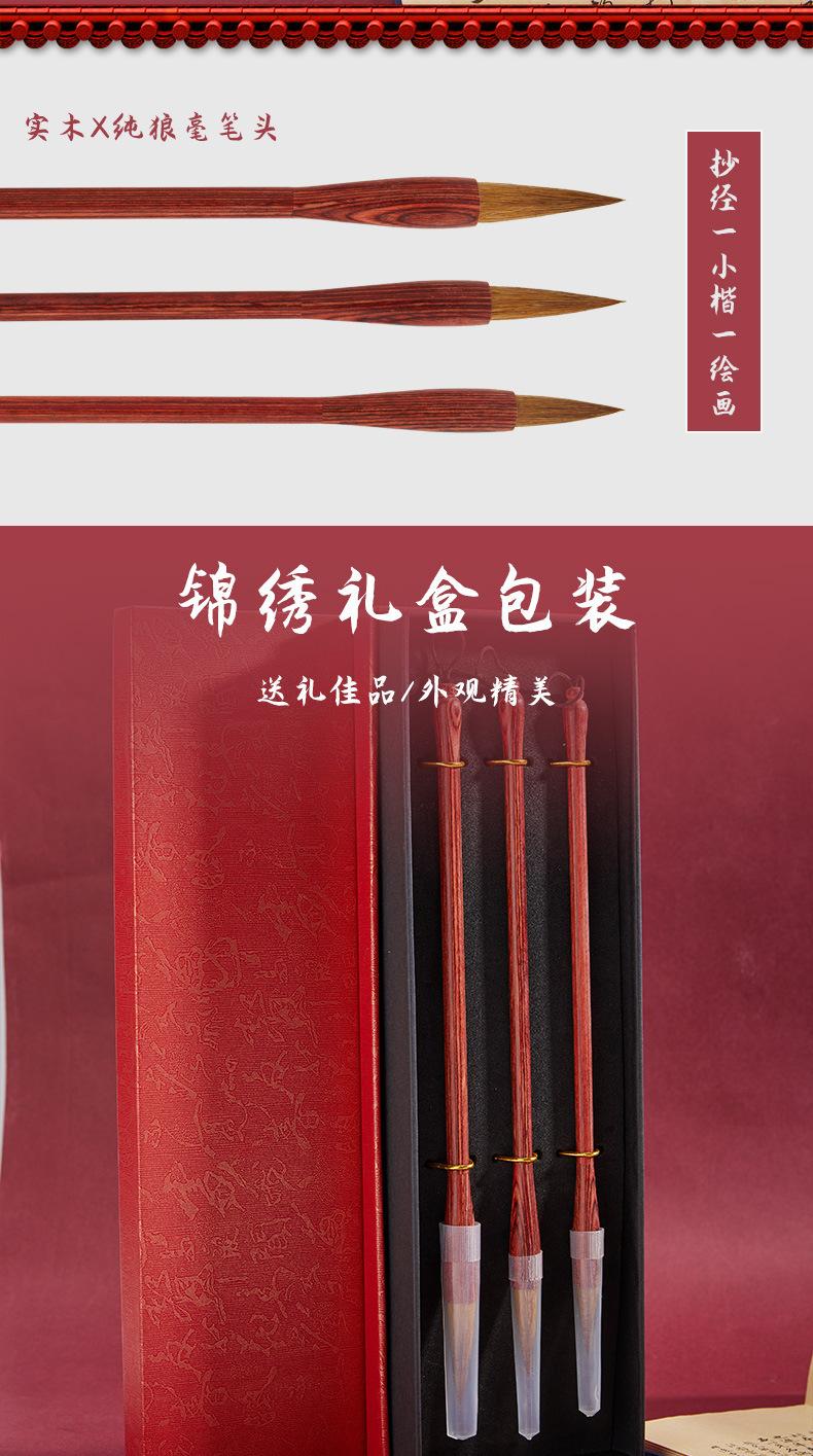 Fábrica al por mayor, clase de entrenamiento de caligrafía, pluma de práctica, sándalo rojo, estuche grande y mediano pequeño, juego de pinceles de pelo de lobo puro para adultos