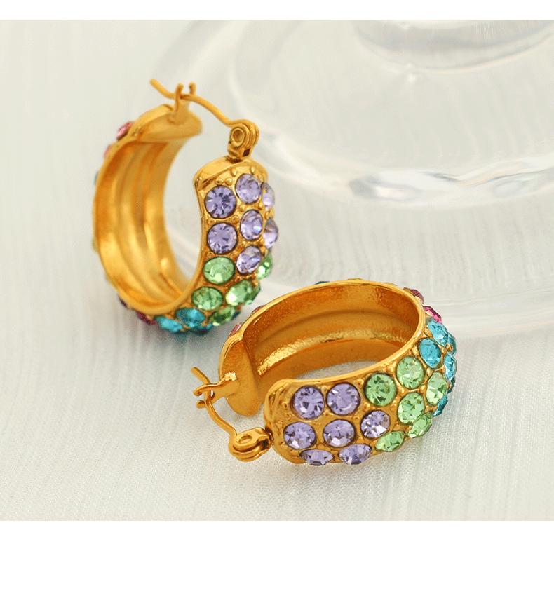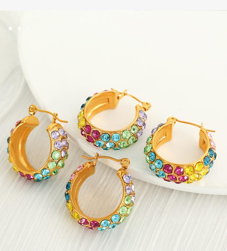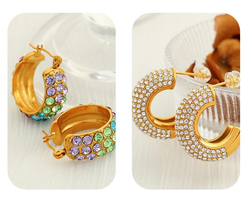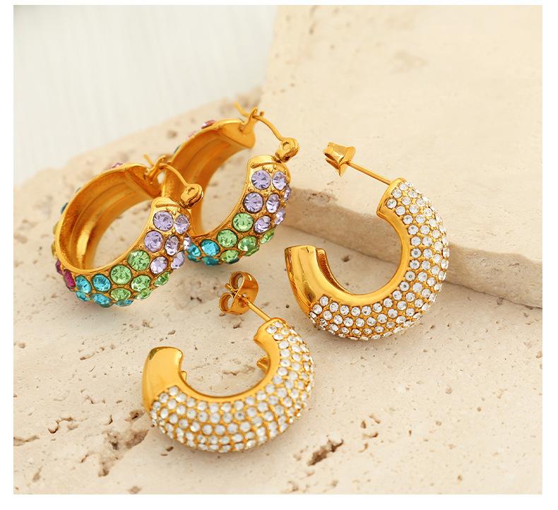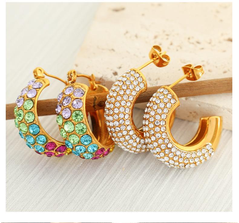 Aretes Populares Europeos y Americanos en Forma de C con Pedrería Moda Transfronteriza con Diamantes de Color Incrustados Aretes de Acero Inoxidable Aretes Simples Personalizados para Mujeres