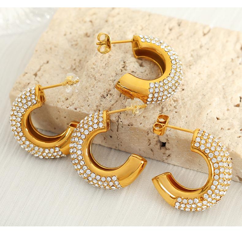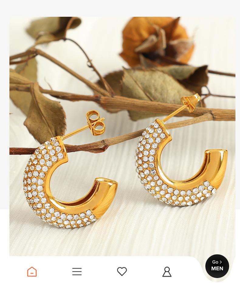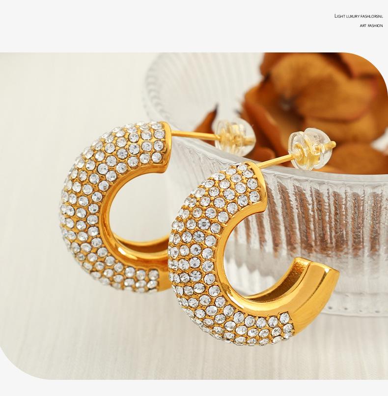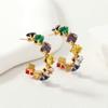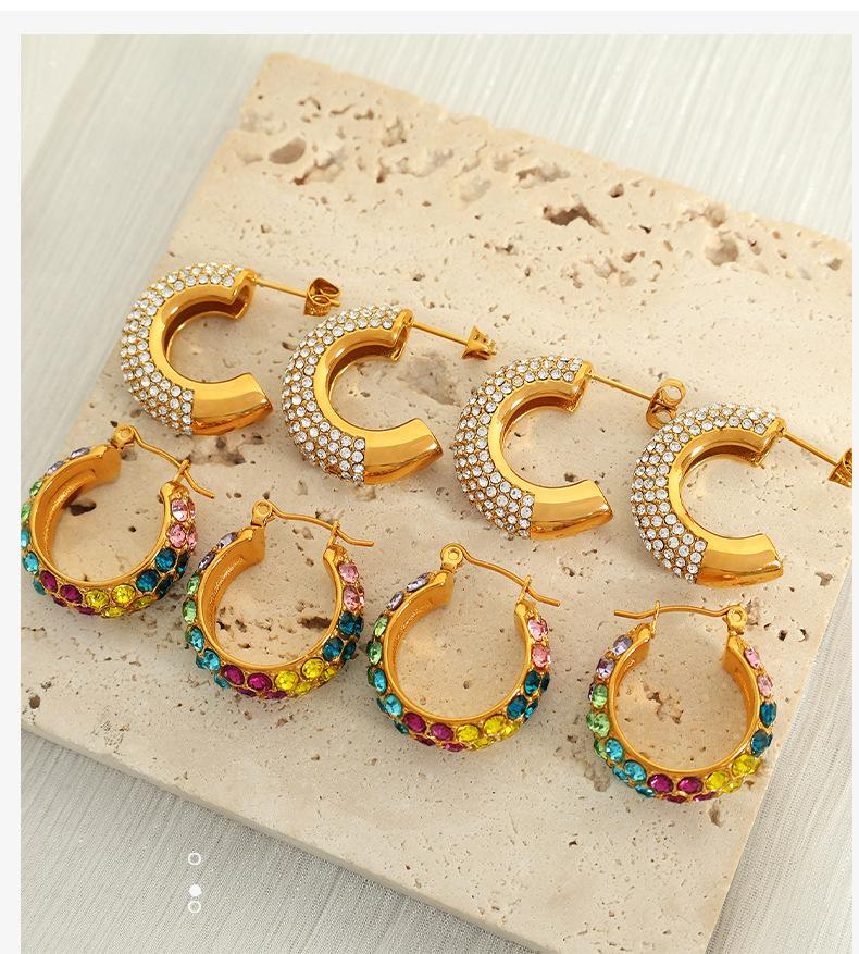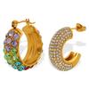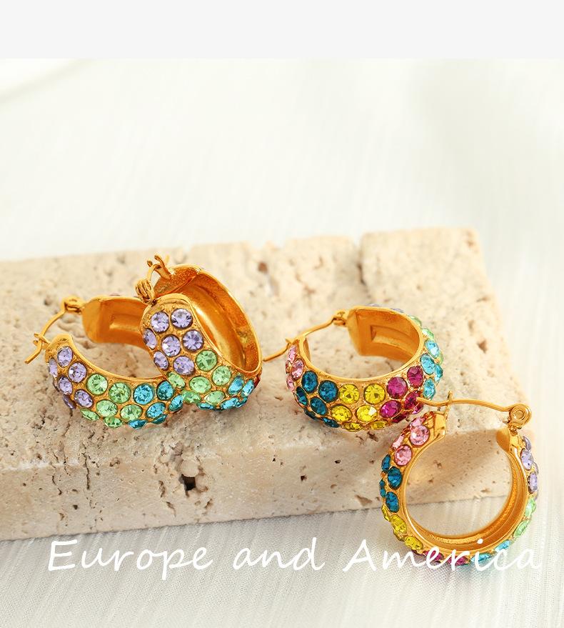 Aretes Populares Europeos y Americanos en Forma de C con Pedrería Moda Transfronteriza con Diamantes de Color Incrustados Aretes de Acero Inoxidable Aretes Simples Personalizados para Mujeres