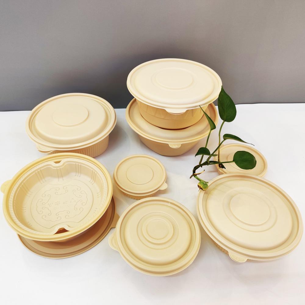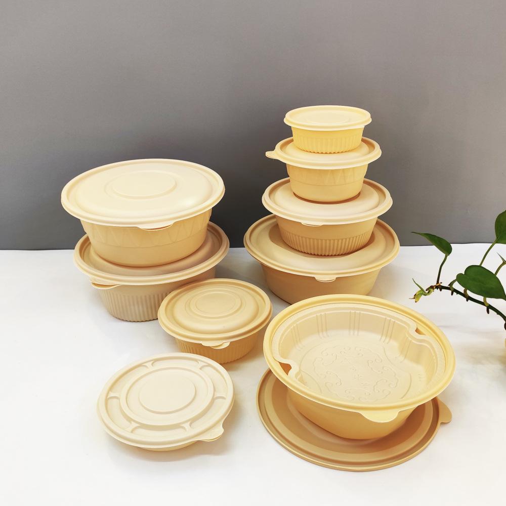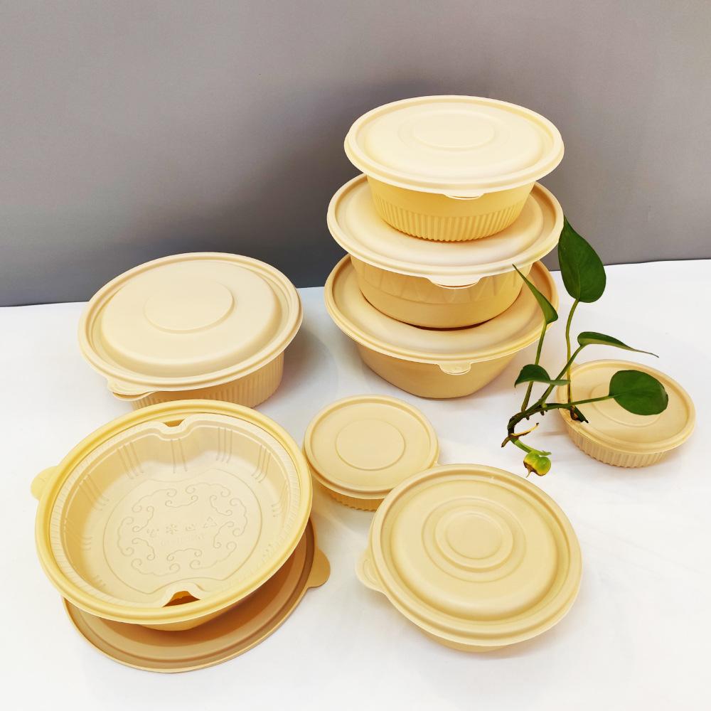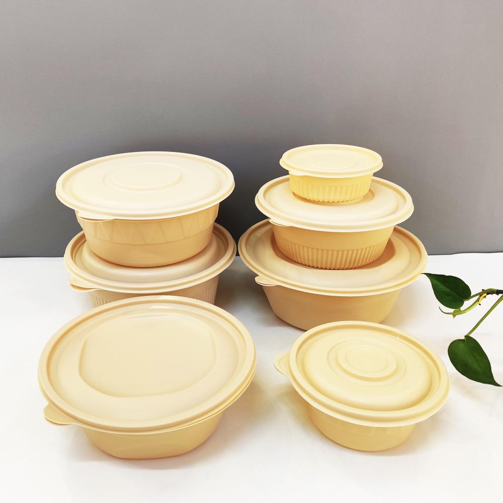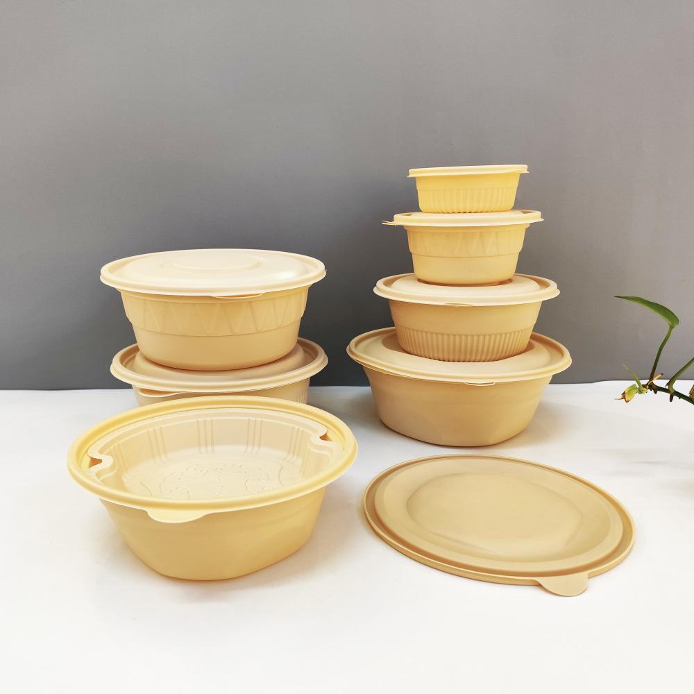 Recipiente desechable con tapa de 700 ml, a base de almidón de maíz, para microondas, calentable y refrigerado, con envase de color.