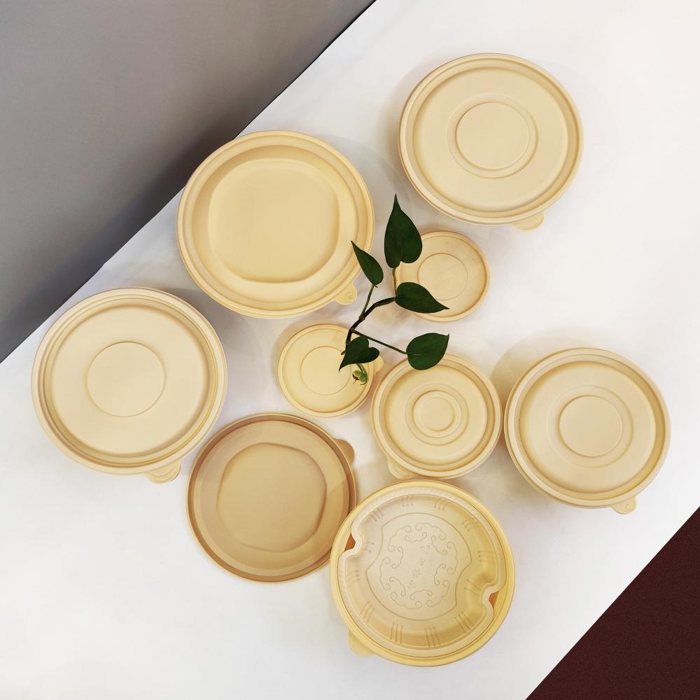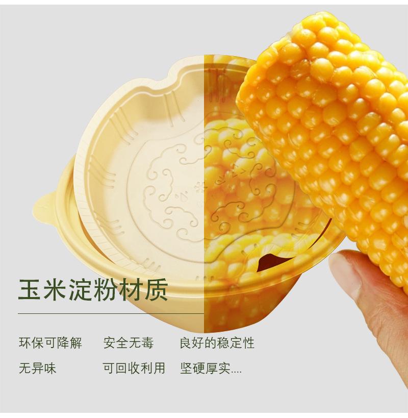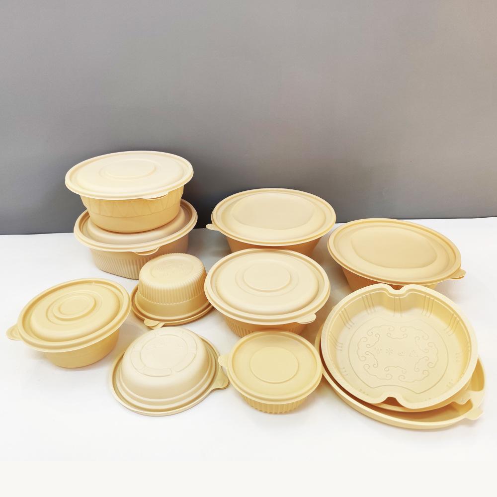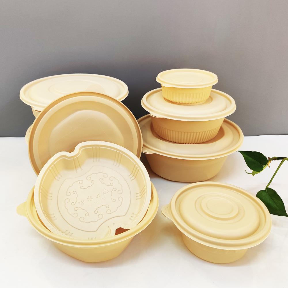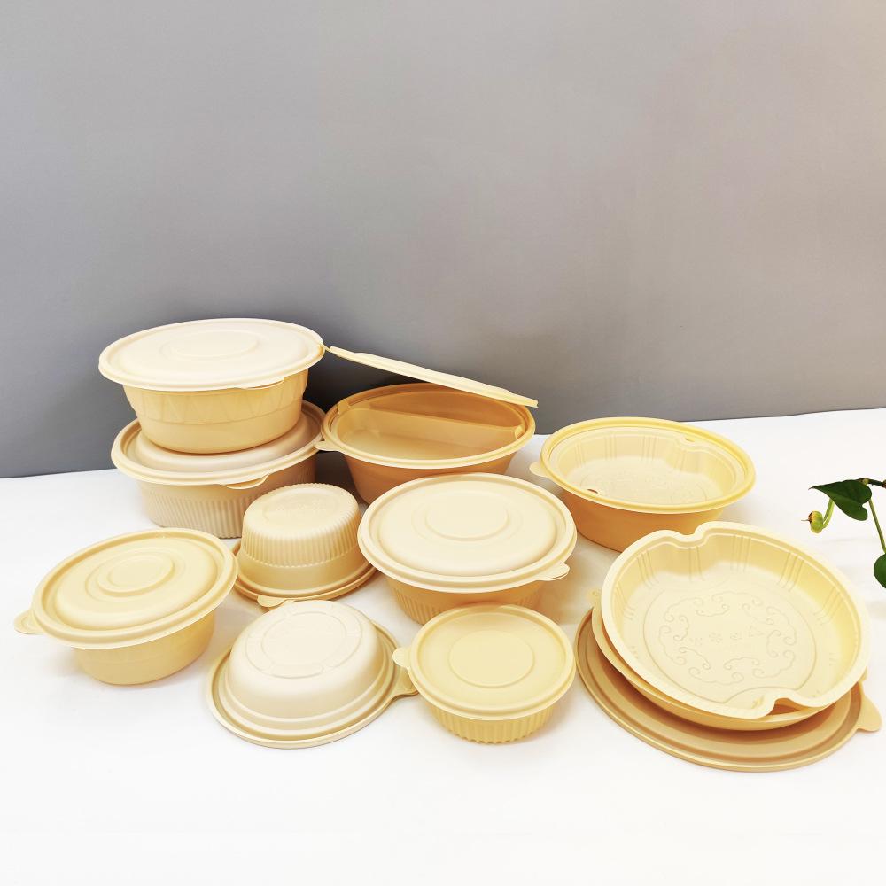 Recipiente desechable con tapa de 700 ml, a base de almidón de maíz, para microondas, calentable y refrigerado, con envase de color.