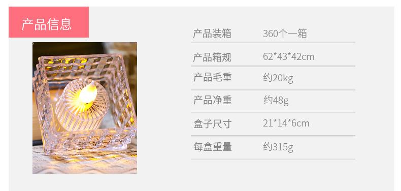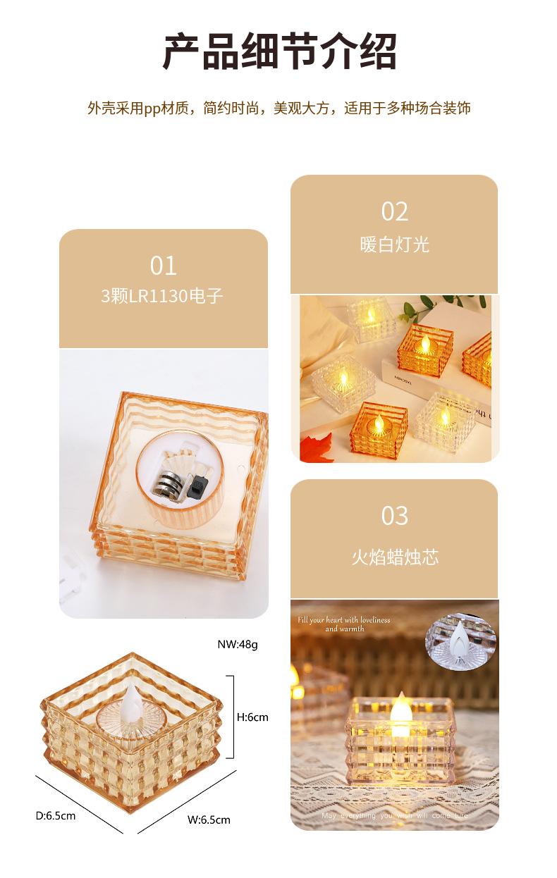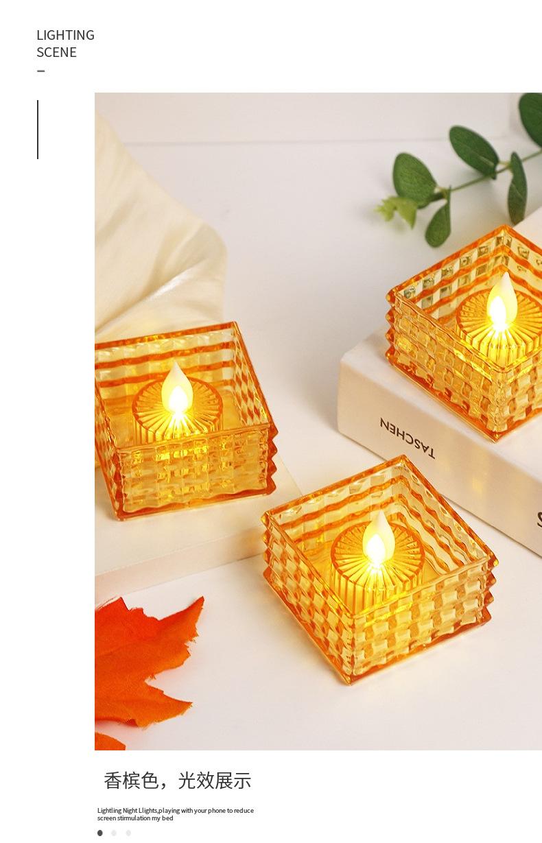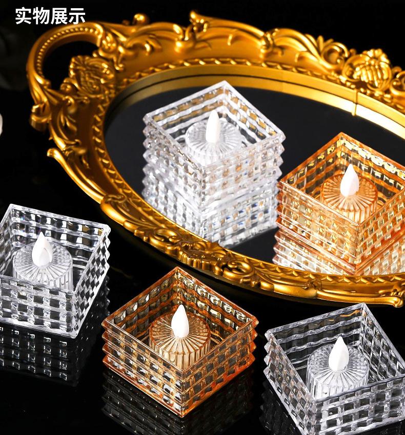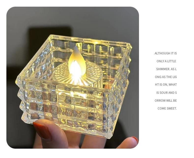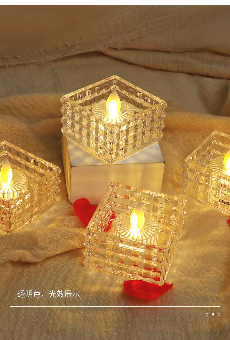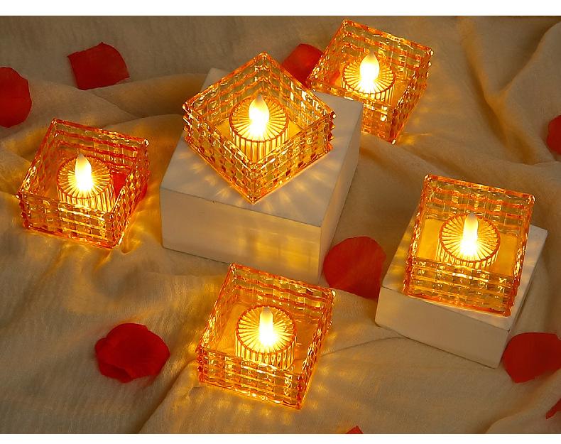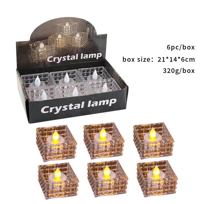 Nueva lámpara de vela de cristal acrílico LED cuadrada, vela electrónica navideña, luz de ambiente, luz nocturna, adornos de escritorio