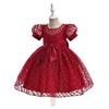 Vestido estilo palacio para niñas de estilo europeo y americano, nuevo vestido de princesa con mangas abullonadas y lazo, disfraz de actuación para festivales de niñas pequeñas