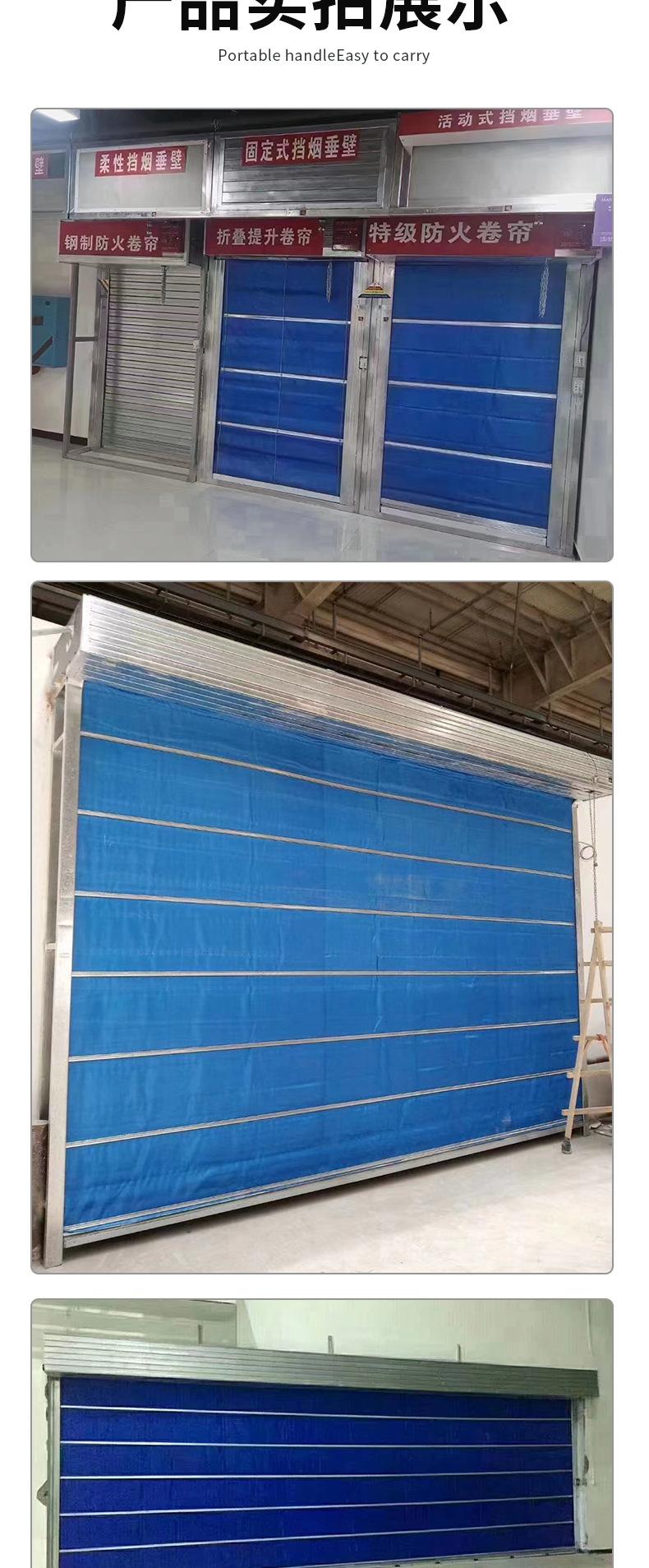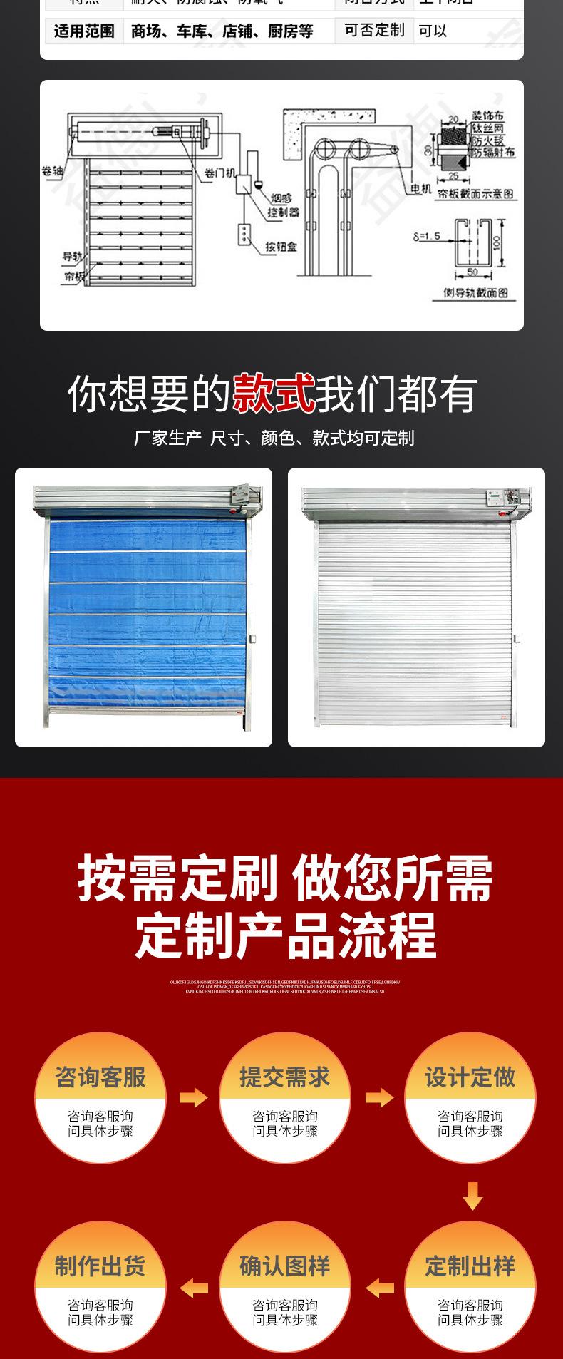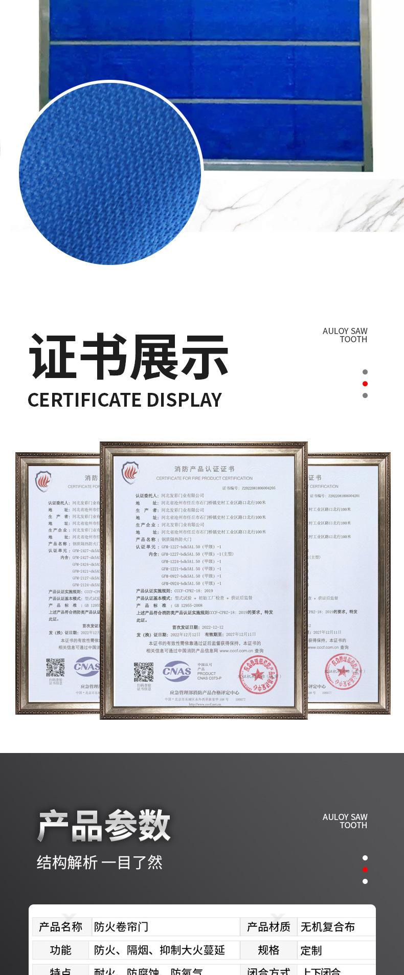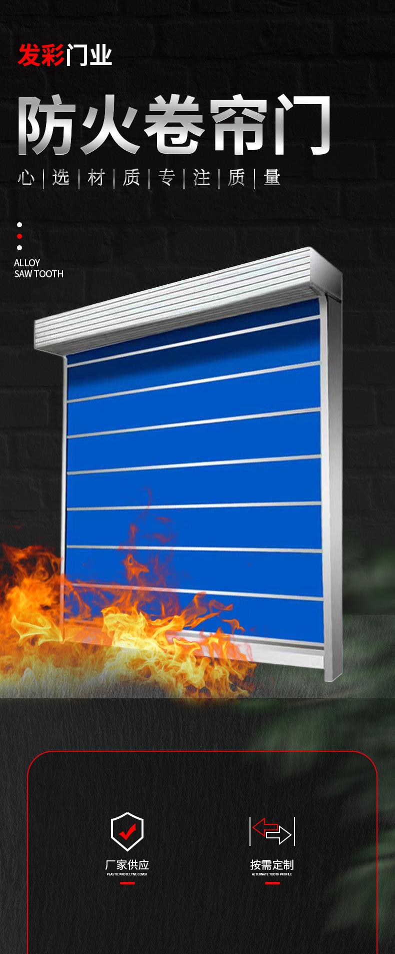 Puerta enrollable de tela inorgánica de grado especial con caja personalizada, puerta cortafuegos de tela inorgánica de doble cortina, puerta cortafuegos de acero