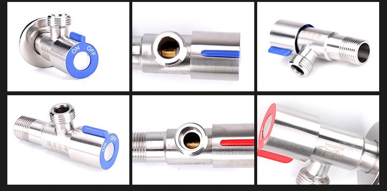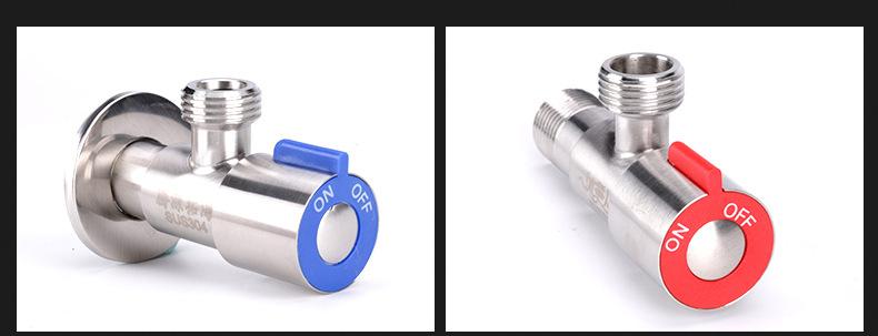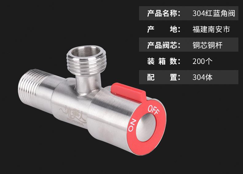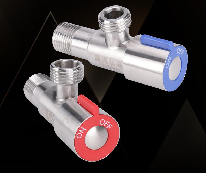 Venta al por mayor, válvula angular de acero inoxidable 304, a prueba de explosiones, para baño, rueda roja y azul, válvula triangular, entrada de agua de gran caudal, fría y caliente, parada de agua